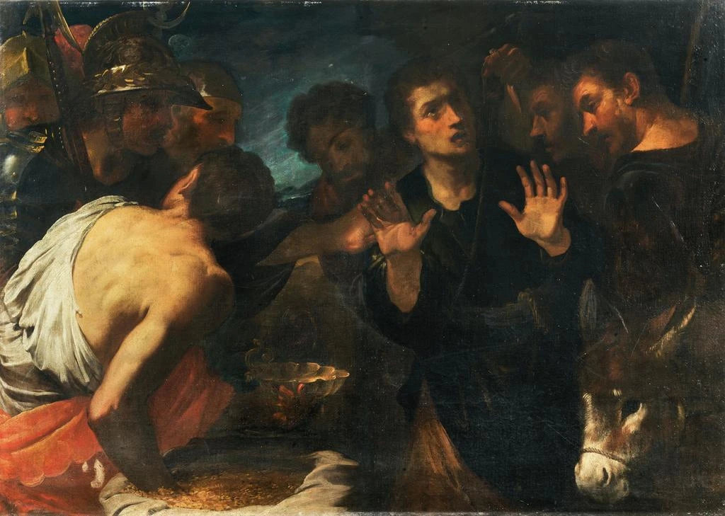 Luca Saltarello, actif au XVIIe siècle, est un peintre dont le travail s'inscrit dans le courant baroque. Bien que moins connu que certains de ses contemporains, il a su capturer des récits bibliques avec une profondeur émotionnelle remarquable. Influencé par les maîtres de son temps, il combine des éléments de réalisme et de dramatisation, créant des œuvres qui parlent à l'âme. Saltarello s'inscrit dans une tradition artistique qui valorise la narration visuelle, et sa capacité à évoquer des histoires complexes à travers la peinture fait de lui un artiste à redécouvrir.