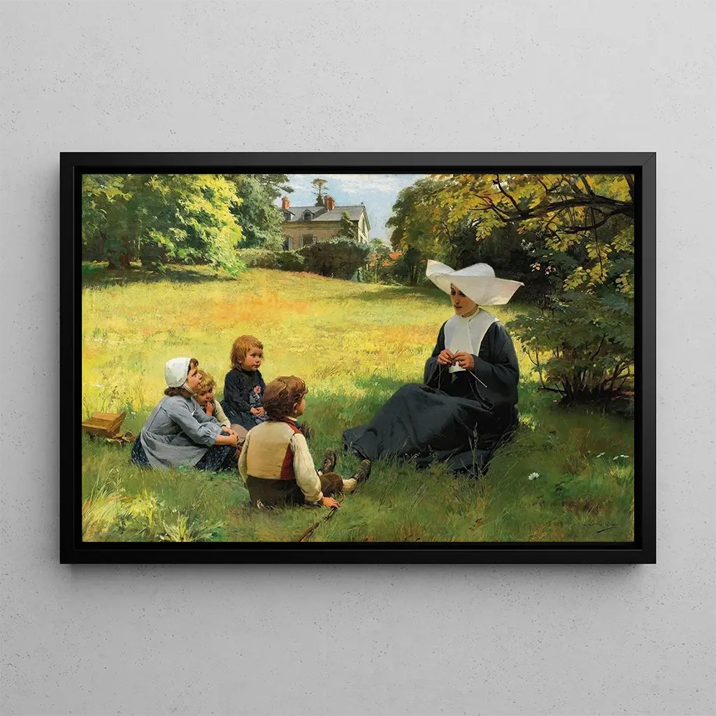 La Leçon de catéchisme : une scène empreinte de sérénité et de dévotion Dans "La Leçon de catéchisme", Louis Émile Adan nous plonge dans une atmosphère paisible et contemplative. Cette œuvre, réalisée avec une technique de peinture à l'huile, se distingue par ses couleurs douces et chaleureuses qui enveloppent les personnages d'une lumière apaisante. La composition, centrée sur un groupe d'enfants attentifs, évoque une scène de transmission de savoirs et de valeurs. Les détails minutieux des vêtements et des expressions des visages révèlent une profonde humanité, tandis que l'arrière-plan délicatement flou accentue le focus sur l'interaction entre le maître et ses élèves. Cette toile invite à la réflexion sur l'éducation et la spiritualité. Louis Émile Adan : un témoin de la vie bourgeoise du XIXe siècle Louis Émile Adan, peintre français du XIXe siècle, est connu pour ses représentations de la vie quotidienne et des scènes de genre. Influencé par le réalisme et l'impressionnisme, il a su capter l'essence des moments simples mais significatifs de la vie bourgeoise. Actif principalement à Paris, Adan a été témoin des bouleversements sociaux et culturels de son époque, ce qui a nourri son œuvre. Ses tableaux, souvent empreints de nostalgie, témoignent d'une époque où l'éducation et la religion occupaient une place centrale dans la société. "La Leçon de catéchisme" s'inscrit parfaitement dans cette tradition, illustrant l'importance de la transmission des valeurs. Une acquisition décorative aux multiples atouts La reproduction de "La Leçon de catéchisme" constitue un choix décoratif idéal pour divers espaces de vie. Que ce soit dans un salon, un bureau ou une chambre, ce tableau apporte une touche d'élégance et de sérénité. Sa qualité de reproduction garantit une fidélité aux détails de l'œuvre originale, permettant d'apprécier chaque nuance de couleur et chaque trait de pinceau. L'attrait esthétique de cette toile réside dans sa capacité à susciter des émotions et à engager des conversations. En intégrant cette œuvre dans votre décoration, vous offrez à votre intérieur une pièce chargée d'histoire et de sens, tout en créant une ambiance chaleureuse et accueillante.