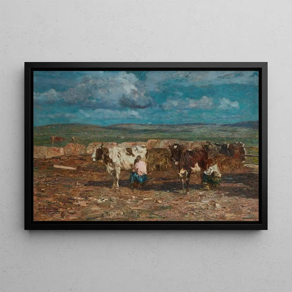 La Traite : un regard poignant sur l'histoire La reproduction de La Traite, œuvre de Beppe Ciardi, nous plonge dans une scène chargée d'émotion et de réflexion. Ce tableau illustre avec puissance les souffrances et les luttes des personnes prises dans le tourbillon de l'histoire. Les couleurs sombres et les contrastes saisissants accentuent la gravité du sujet, tandis que la technique picturale de Ciardi, alliant réalisme et expressionnisme, capte l’attention du spectateur. Chaque visage, chaque geste raconte une histoire, rendant cette œuvre à la fois captivante et troublante. Beppe Ciardi : un artiste engagé dans son temps Beppe Ciardi, peintre italien du début du XXe siècle, est connu pour ses œuvres qui traitent de thèmes sociaux et historiques. Influencé par le mouvement réaliste, il a cherché à donner une voix aux opprimés et à mettre en lumière les injustices de son époque. La Traite est l'une de ses œuvres les plus emblématiques, reflétant son engagement envers les causes sociales. À travers son art, Ciardi a su capturer l’essence de la souffrance humaine, faisant de lui une figure importante dans l’histoire de l’art italien. Une acquisition décorative aux multiples atouts La reproduction de La Traite est une œuvre qui ne manquera pas d'attirer l'attention dans votre intérieur. Que ce soit dans un salon, un bureau ou une chambre, ce tableau apporte une profondeur et une réflexion sur des thèmes universels. Sa qualité d'impression et son respect des détails font de cette toile un choix idéal pour les amateurs d'art soucieux de l'impact de leurs choix décoratifs. En intégrant cette œuvre dans votre espace, vous offrez à vos invités une occasion de dialogue et de contemplation, tout en enrichissant votre décoration d'une pièce chargée d'histoire.