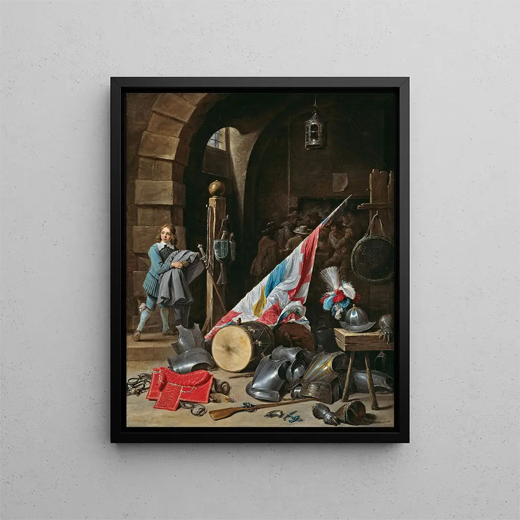 Reproduction Le Corps de garde - David Teniers le Jeune – Introduction captivante Dans l'univers riche et complexe de l'histoire de l'art, certaines œuvres se distinguent par leur capacité à capturer l'essence de la vie quotidienne tout en offrant une réflexion sur la nature humaine. "Le Corps de garde" de David Teniers le Jeune est l'une de ces pièces magistrales. Ce tableau, qui dépeint une scène de la vie militaire au XVIIe siècle, invite le spectateur à plonger dans un monde où l'humour et la camaraderie se mêlent à la rigueur de la discipline militaire. La composition habile de Teniers, combinée à sa maîtrise des couleurs et des textures, crée une atmosphère vivante et immersive, propice à l'exploration des interactions humaines. Style et singularité de l’œuvre Le style de David Teniers le Jeune est caractérisé par une attention méticuleuse aux détails et une palette de couleurs vibrantes qui insufflent une vie palpable à ses sujets. Dans "Le Corps de garde", l'artiste dépeint une scène animée où des soldats se rassemblent autour d'une table, partageant un moment de convivialité. Les visages expressifs et les postures naturelles des personnages témoignent de l'habileté de Teniers à capturer des moments fugaces de la vie. Chaque élément de la composition, des vêtements aux accessoires, est soigneusement rendu, offrant ainsi une représentation fidèle de l'époque. La lumière joue également un rôle crucial dans cette œuvre, mettant en valeur les détails et créant une profondeur qui attire le regard du spectateur. Cette capacité à jouer avec la lumière et l'ombre renforce l'immersion dans la scène, transformant une simple représentation en une véritable narration visuelle. L’artiste et son influence David Teniers le Jeune, né en 1610 à Anvers, est considéré comme l'un des maîtres du paysage et des scènes de genre de son temps. Fils d'un peintre, il a hérité d'un talent exceptionnel et a su s'imposer dans le milieu artistique européen. Son œuvre se distingue par une approche réaliste et une sensibilité à la vie quotidienne, ce qui lui a permis de toucher un large public. Teniers a également été un pionnier dans l'intégration de la vie paysanne et militaire dans ses tableaux, une tendance qui a ouvert la voie à de nombreux artistes ultérieurs. Son influence s'étend bien au-delà de son