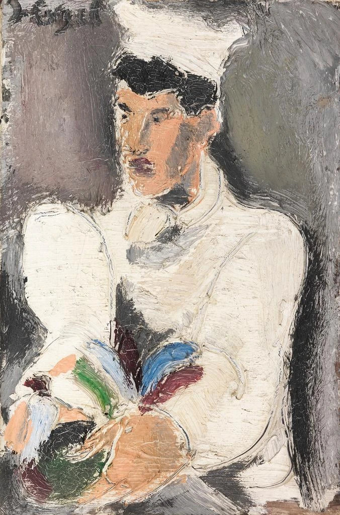 Helmut Kolle, peintre allemand du début du XXe siècle, est souvent associé au mouvement expressionniste. Né en 1884, il a été influencé par les courants artistiques de son temps, notamment le fauvisme et le cubisme. Kolle a su développer un style unique, alliant des éléments de ces mouvements tout en conservant une approche figurative. Son œuvre reflète une sensibilité à la vie quotidienne et aux scènes de genre, comme en témoigne "Le cuisinier et le coq". À travers ses tableaux, il cherche à capturer l'essence des moments simples, tout en les imprégnant d'une intensité émotionnelle qui lui est propre.