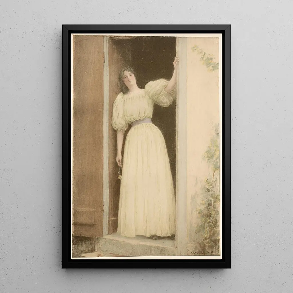 Raphaël Collin, peintre français du XIXe siècle, est souvent associé au mouvement symboliste, qui cherchait à exprimer des idées abstraites à travers des images évocatrices. Sa formation académique et ses voyages en Europe ont enrichi son style, lui permettant de fusionner des influences variées. Le Départ, réalisé à une époque où l'art se libérait des conventions, témoigne de son talent à capturer des émotions profondes et des récits personnels. Son œuvre est un reflet de la quête spirituelle et artistique de son temps, marquée par une recherche de sens et de beauté.