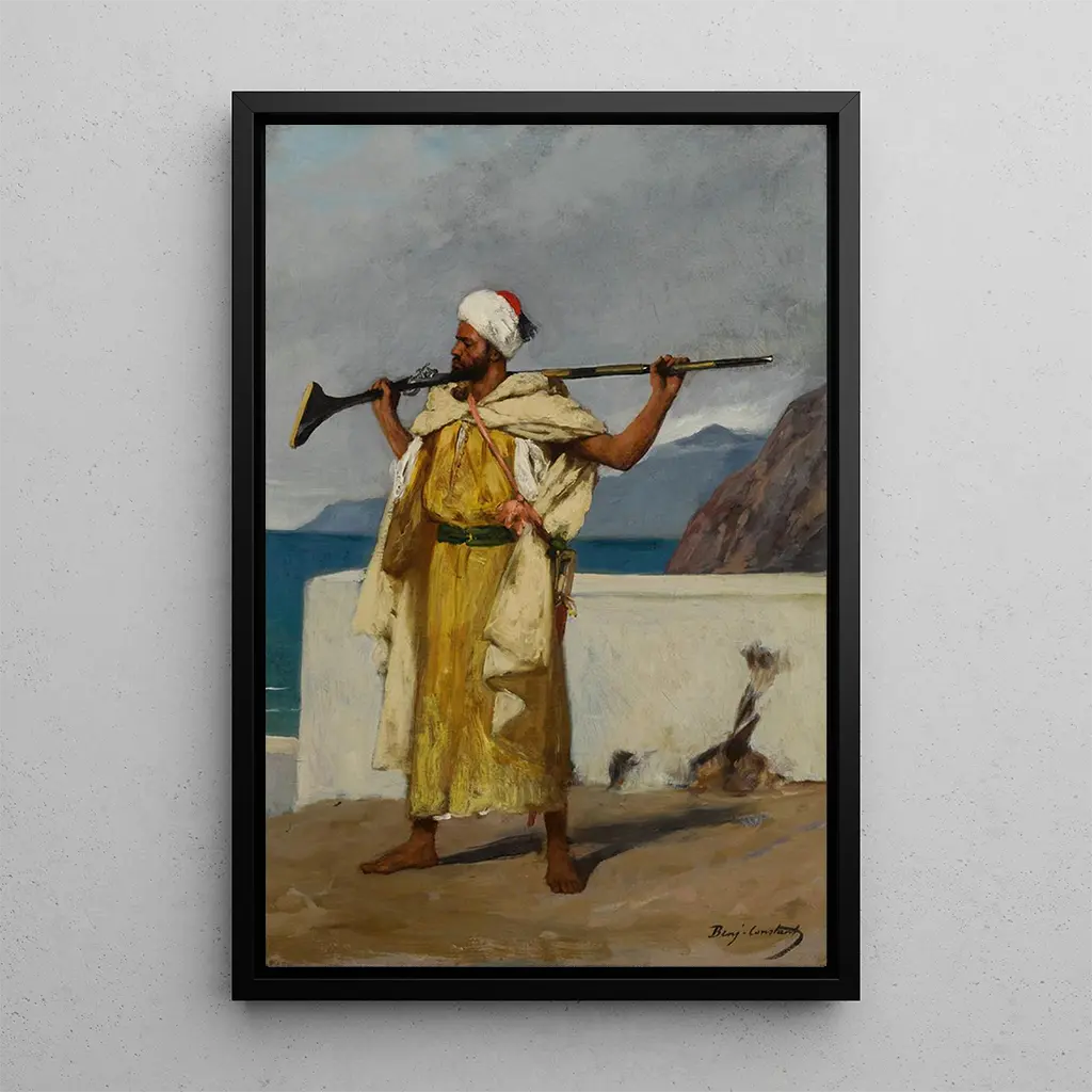 Le Garde : un moment de sérénité figé dans le temps "Le Garde" de Jean-Joseph Benjamin-Constant est une œuvre qui capture l'essence même de la tranquillité. Cette toile dépeint un homme en posture de veille, enveloppé dans des drapés riches et colorés. Les nuances de bleu et de rouge se mêlent harmonieusement, créant une atmosphère à la fois paisible et intrigante. La technique de l'artiste, qui allie précision et fluidité, permet d'apprécier les détails des tissus et des expressions humaines. Ce tableau évoque une pause contemplative, un instant suspendu où le temps semble s'arrêter pour laisser place à la beauté. Jean-Joseph Benjamin-Constant : l'orientalisme à l'honneur Jean-Joseph Benjamin-Constant est un peintre français qui a marqué la fin du XIXe siècle par ses œuvres orientalistes. Sa passion pour l'Orient, nourrie par ses voyages, lui a permis de créer des compositions riches en couleurs et en émotions. Influencé par le réalisme et l'impressionnisme, il a su capturer la lumière et les atmosphères de ses sujets. Benjamin-Constant est également reconnu pour son rôle d'enseignant, ayant formé de nombreux artistes qui ont poursuivi son héritage. Son travail demeure une référence dans le domaine de la peinture orientaliste, célébrant la beauté des cultures exotiques. Une acquisition décorative aux multiples atouts La reproduction de "Le Garde" est un choix idéal pour enrichir votre décoration intérieure. Que ce soit dans un salon, un bureau ou une chambre, ce tableau apporte une touche d'élégance et de sérénité. Sa qualité d'impression et sa fidélité à l'œuvre originale garantissent un rendu visuel impressionnant. En intégrant cette toile dans votre espace, vous créez une ambiance apaisante et raffinée, tout en mettant en avant une œuvre d'art qui suscite l'admiration. L'attrait esthétique de "Le Garde" en fait un ajout précieux à toute collection d'art.