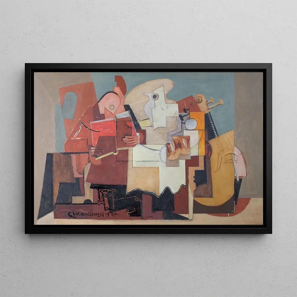 Louis Marcoussis, peintre d'origine polonaise, a joué un rôle significatif dans le développement du cubisme au début du XXe siècle. Établi à Paris, il a été influencé par des artistes tels que Picasso et Braque, mais a su développer un style qui lui est propre. Son œuvre se distingue par une approche intellectuelle et une exploration des thèmes de l'intimité et de la vie quotidienne. "Le Lecteur" est emblématique de son travail, illustrant son intérêt pour la représentation de l'homme dans son environnement, tout en intégrant des éléments de la modernité artistique de son époque.