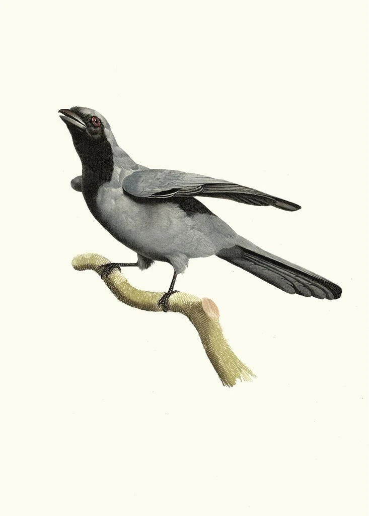 La reproduction du Rollier masque noir dévoile un oiseau d'une beauté saisissante, avec son plumage aux teintes sombres et aux reflets irisés. Jacques Barraband, par son talent, parvient à capturer l'élégance de cet oiseau, dont le regard perçant et le masque distinctif ajoutent une dimension mystérieuse à l'œuvre. Les détails minutieux des plumes, rendus avec une technique d’aquarelle raffinée, créent une atmosphère à la fois captivante et poétique, invitant le spectateur à s’immerger dans le monde fascinant des oiseaux.
