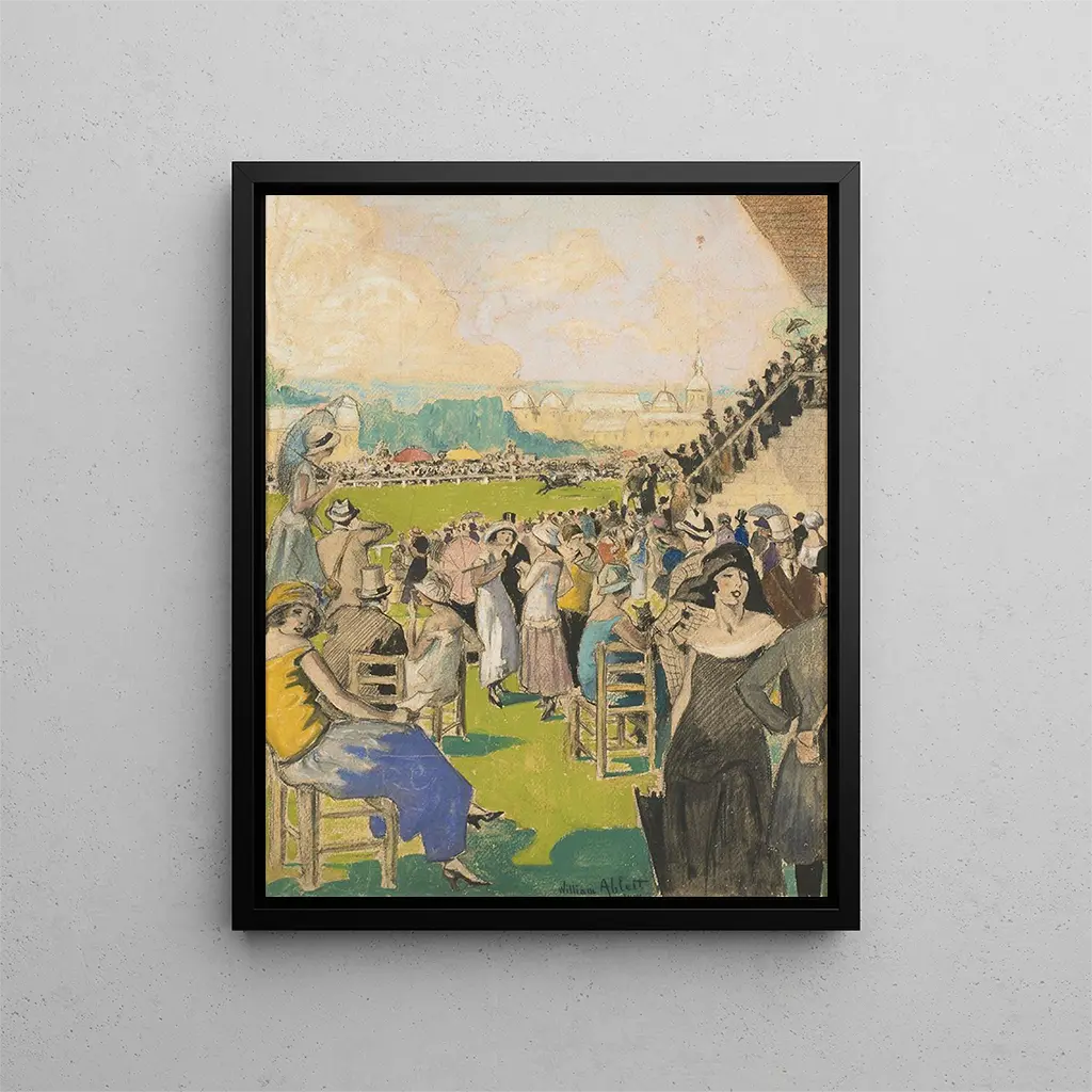 Son œuvre, souvent influencée par l’impressionnisme et le réalisme académique, témoigne d’un regard délicat sur la société de son époque. Avec Les Courses à Chantilly, il capture l’élégance du monde équestre et l’atmosphère raffinée de la Belle Époque.