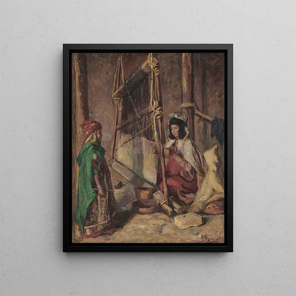 René Tourniol, artiste français du XXe siècle, est connu pour ses représentations de la vie quotidienne et des scènes de genre. Dans 'Les fileuses, Bou Sada', il capture un moment de travail artisanal, mettant en lumière la beauté du processus créatif et l'importance de la tradition. Les figures féminines, engagées dans leur tâche, sont représentées avec une sensibilité qui souligne leur force et leur détermination. Tourniol utilise une palette de couleurs chaudes pour créer une atmosphère intime et accueillante, évoquant le lien profond entre l'homme et son environnement. Cette œuvre, tout en étant ancrée dans une réalité sociale, trouve une résonance dans des intérieurs modernes qui valorisent l'authenticité et le savoir-faire. Plongez dans cet univers riche en histoire et explorez sa reproduction sur Artem Legrand.