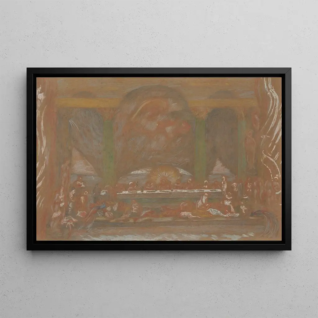 James Ensor, figure emblématique du symbolisme belge, a marqué la fin du XIXe siècle par son style audacieux et innovant. Influencé par le mouvement impressionniste et les traditions folkloriques, il a su développer une esthétique personnelle qui mêle le grotesque et le sublime. Ses œuvres, souvent peuplées de masques et de figures fantastiques, interrogent la condition humaine et la société de son temps. "Les Noces de Cana" s'inscrit dans cette démarche, offrant une réflexion sur la joie et la célébration, tout en intégrant des éléments de critique sociale.