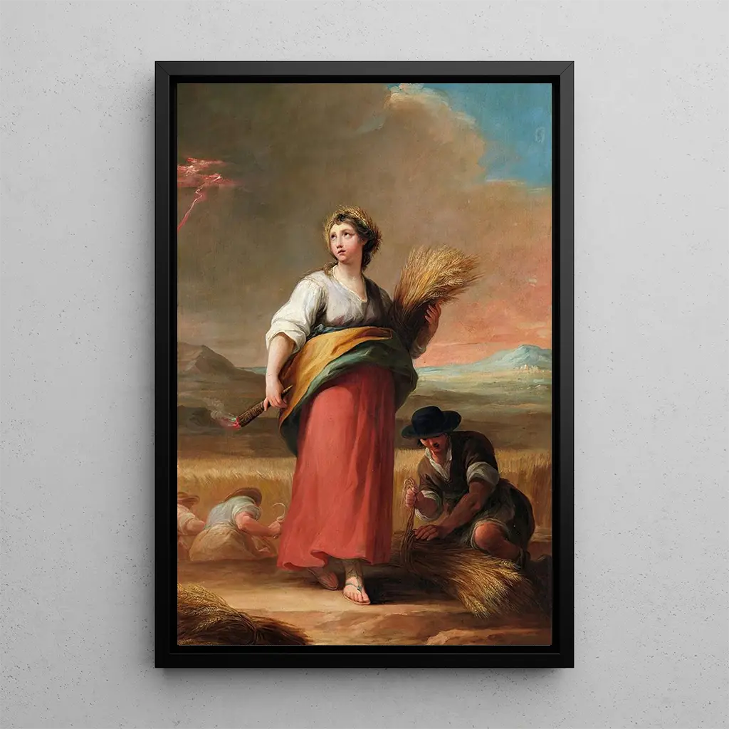 L'Été : une ode à la chaleur et à la lumière L'œuvre "L'Été" de Mariano Salvador Maella évoque une saison de plénitude, où la lumière dorée inonde le paysage. Les couleurs chaudes, allant des jaunes éclatants aux oranges profonds, créent une atmosphère vibrante et joyeuse. La composition est soigneusement équilibrée, avec des éléments naturels qui s'entrelacent harmonieusement, invitant le spectateur à plonger dans cette scène estivale. Les détails minutieux des personnages et des paysages témoignent d'une technique maîtrisée, où chaque coup de pinceau semble capturer l'essence même de l'été, rendant l'œuvre à la fois vivante et intemporelle. Mariano Salvador Maella : un maître du néoclassicisme espagnol Mariano Salvador Maella, actif au XVIIIe siècle, est un peintre espagnol dont le travail s'inscrit dans le courant néoclassique. Influencé par les grands maîtres de la Renaissance et du Baroque, il a su allier tradition et innovation dans ses œuvres. Sa carrière est marquée par une recherche constante de la beauté et de l'harmonie, ce qui lui a valu une place de choix dans l'histoire de l'art espagnol. "L'Été" est un exemple parfait de son style, où il parvient à transmettre des émotions profondes à travers des scènes de la vie quotidienne, tout en intégrant des éléments mythologiques et allégoriques. Une acquisition décorative aux multiples atouts La reproduction de "L'Été" est une pièce décorative idéale pour embellir votre intérieur, que ce soit dans un salon, un bureau ou une chambre. Sa palette de couleurs chaleureuses et son ambiance enjouée apportent une touche de vitalité à n'importe quel espace. La qualité de la reproduction garantit une fidélité remarquable à l'œuvre originale, permettant de profiter de chaque détail avec une clarté impressionnante. En choisissant ce tableau, vous optez pour une œuvre d'art qui non seulement enrichit votre décoration, mais suscite également des conversations et des émotions chez vos invités.