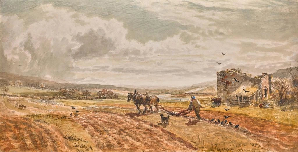 Samuel Bough, peintre écossais du XIXe siècle, est reconnu pour ses paysages romantiques qui capturent l'essence de la nature. Influencé par le mouvement préraphaélite, il a su développer un style unique, alliant réalisme et poésie. Bough a consacré sa carrière à explorer les paysages écossais, mais également à s'inspirer des paysages anglais et gallois. Son travail a été salué pour sa capacité à évoquer des émotions profondes à travers des scènes naturelles. En tant que membre de la Royal Scottish Academy, il a laissé un héritage durable dans le monde de l'art, influençant de nombreux artistes contemporains.