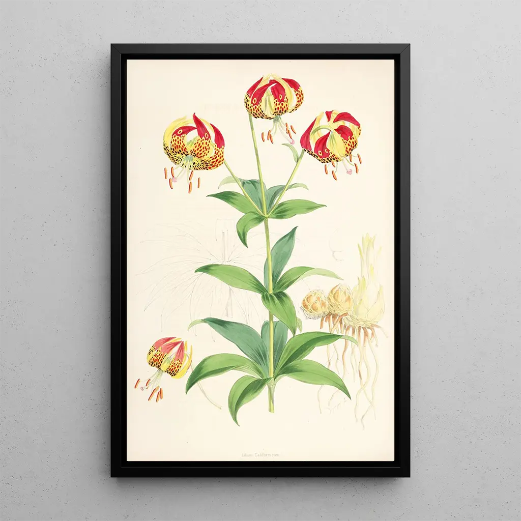 Walter Hood Fitch, botaniste et illustrateur du XIXe siècle, a marqué son époque par ses œuvres d'une précision inégalée. Formé à l'École des Beaux-Arts de Londres, il a été influencé par les grands naturalistes de son temps, tels que Joseph Dalton Hooker. Fitch a consacré sa carrière à l'illustration de plantes, contribuant à des publications scientifiques majeures. Son style, alliant rigueur scientifique et esthétique raffinée, a permis de rendre hommage à la beauté des espèces végétales. Lilium Californicum s'inscrit dans cette tradition, témoignant de l'importance de l'art dans la science botanique.