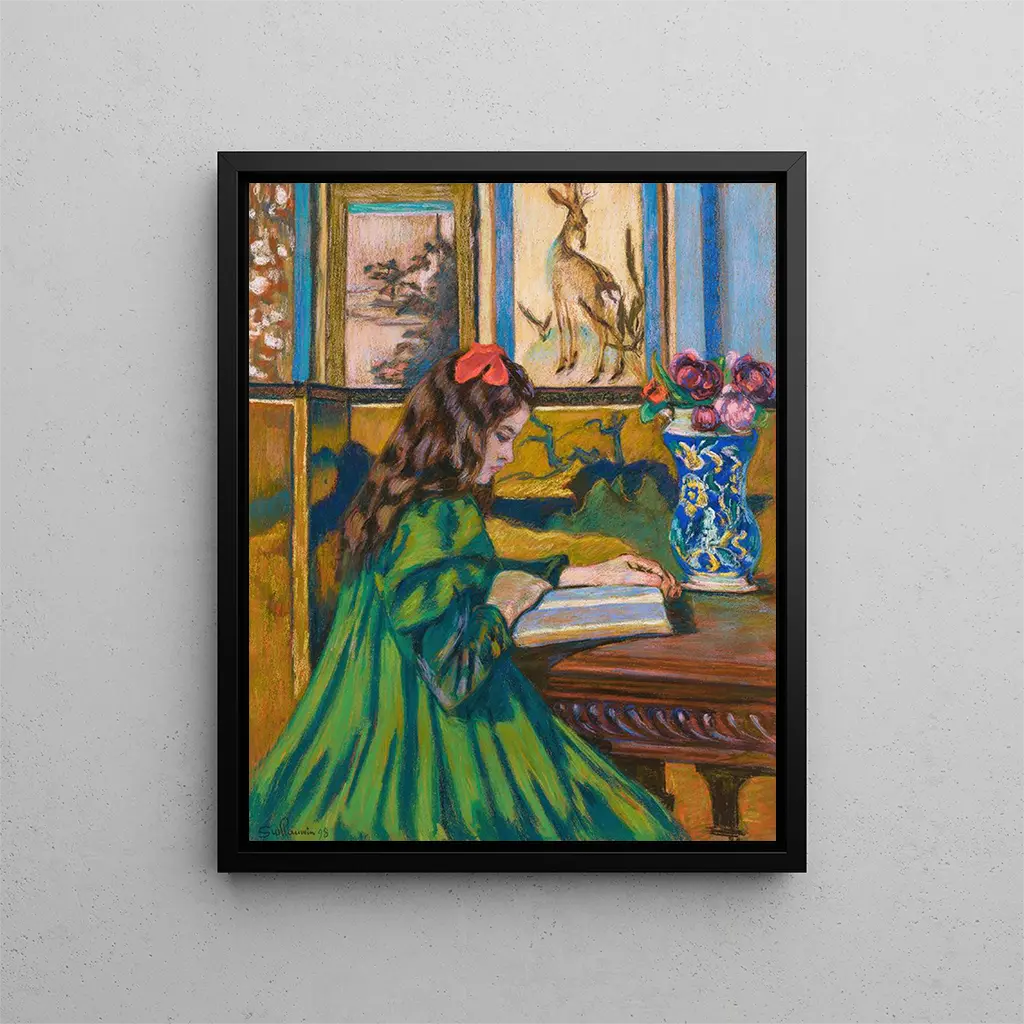 Dans l'univers fascinant de l'art impressionniste, l'œuvre "Madeleine Guillaumin lisant" d'Armand Guillaumin se distingue par sa délicatesse et son intimisme. Ce tableau, qui capture un moment de sérénité et de concentration, nous plonge dans la vie quotidienne de l'artiste et de son modèle, Madeleine Guillaumin, femme de lettres et muse. À travers cette œuvre, Armand Guillaumin nous invite à partager un instant suspendu, où le monde extérieur semble s'évanouir au profit de la lecture. La lumière douce qui émane de la toile et la posture apaisée de la lectrice nous transportent dans un univers empreint de poésie, où chaque détail raconte une histoire.