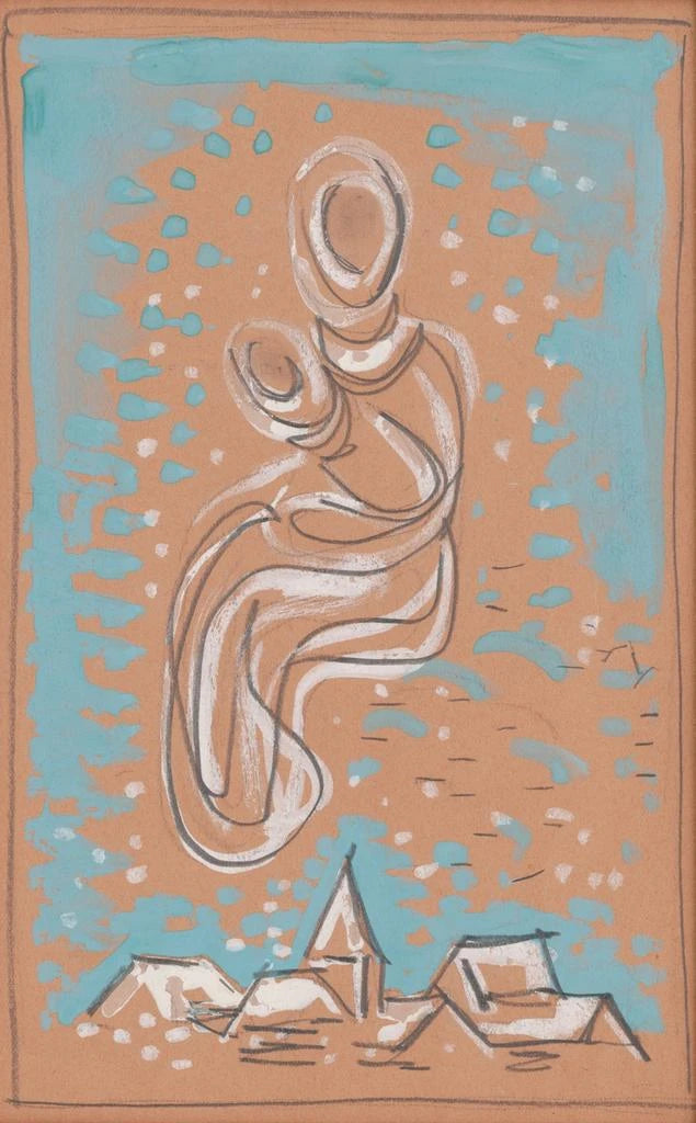 Mikuláš Galanda, né en 1895, est un artiste slovaque dont le travail a été profondément influencé par les courants artistiques de son temps, notamment l'expressionnisme. Sa carrière, marquée par une quête constante de l'authenticité émotionnelle, reflète les luttes et les aspirations de son époque. Galanda a su intégrer des éléments folkloriques slovaques dans ses œuvres, créant ainsi un style unique qui lui a permis de se démarquer sur la scène artistique. La Madone, emblématique de sa vision artistique, témoigne de son engagement à représenter des thèmes universels tels que la maternité et la spiritualité.