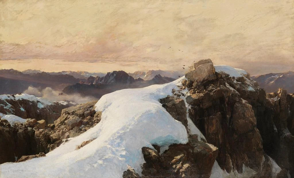 Edward Theodore Compton, actif à la fin du XIXe siècle et au début du XXe siècle, est un artiste britannique connu pour ses paysages inspirés des montagnes et des vallées. Influencé par le romantisme, il a su transmettre la beauté sauvage de la nature à travers ses œuvres. Ses voyages en Europe, notamment dans les Alpes, ont profondément marqué son style, lui permettant de capturer des moments fugaces de lumière et d'atmosphère. "Matin au sommet de la montagne" est un exemple parfait de son talent, témoignant de son habileté à évoquer des émotions à travers des paysages grandioses.
