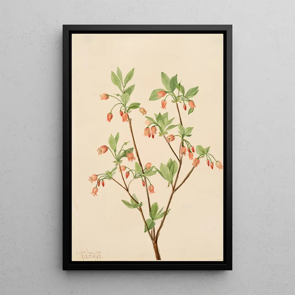La reproduction de Menziesea Menziesea glabella, œuvre de Mary Vaux Walcott, capture l'essence délicate de cette plante rare. Les nuances de vert et de jaune se mêlent harmonieusement, créant un tableau vivant qui évoque la sérénité des paysages botaniques. La technique aquarelle utilisée par Walcott permet de rendre la transparence des pétales et la texture des feuilles avec une finesse remarquable. L'atmosphère qui se dégage de cette œuvre est à la fois apaisante et inspirante, invitant le spectateur à plonger dans un univers où la nature est reine.