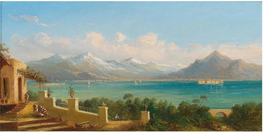 La reproduction de "Motif du lac Majeur" de Ferdinand Bonheur capture la beauté sereine des paysages lacustres. Les nuances de vert et de bleu se mêlent harmonieusement, évoquant la tranquillité des eaux et la richesse de la végétation environnante. La technique de Bonheur, qui allie réalisme et impressionnisme, permet de ressentir la lumière du soleil se reflétant sur la surface de l'eau. Chaque détail, des reflets aux ombres, contribue à créer une atmosphère apaisante, invitant à la contemplation de la nature.