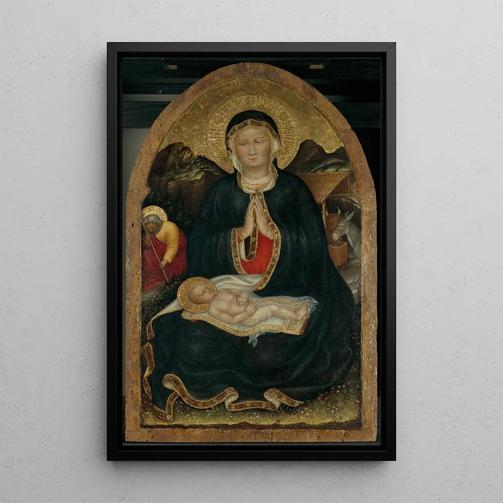 La reproduction de la Nativité de Gentile da Fabriano capture la magie et la solennité de la naissance du Christ. Les couleurs vives et les détails minutieux mettent en valeur la scène centrale, où la Vierge, l'Enfant et les figures environnantes sont baignés dans une lumière dorée. La technique de la tempera, utilisée par l'artiste, permet de créer des textures riches et des nuances délicates. Cette œuvre, pleine de vie et de mouvement, évoque une atmosphère de joie et de dévotion, invitant à la réflexion sur le sens de la naissance sacrée.