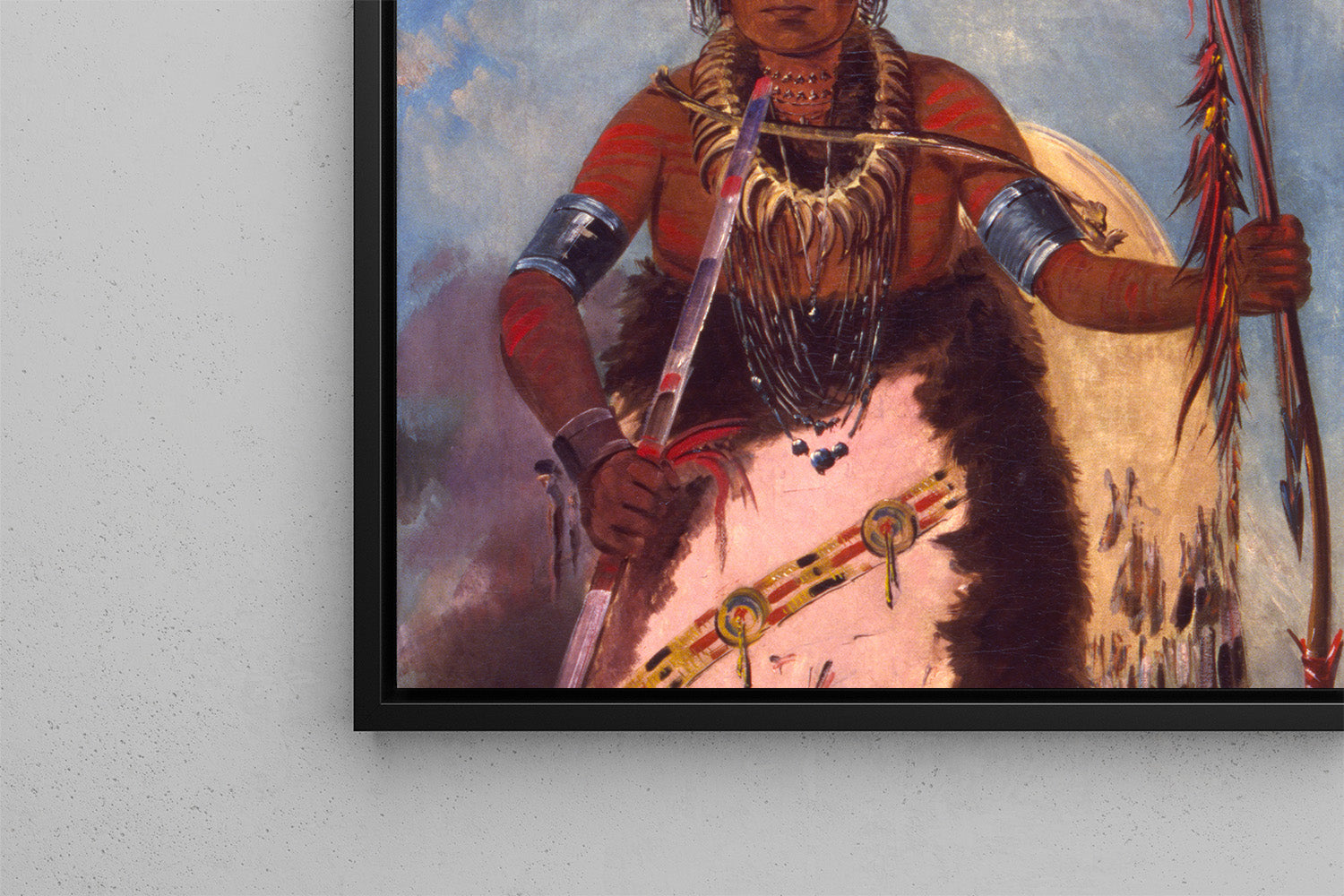 La peinture de Catlin dépasse le simple portrait : elle est à la fois une création artistique et un document historique. Les couleurs franches, le traitement direct du visage et des ornements témoignent du style caractéristique de l’artiste, soucieux de réalisme et de fidélité. Pour l’historien de l’art comme pour l’amateur de décoration, ce tableau incarne la rencontre entre deux mondes : celui de l’artiste américain et celui des peuples autochtones des Plaines.