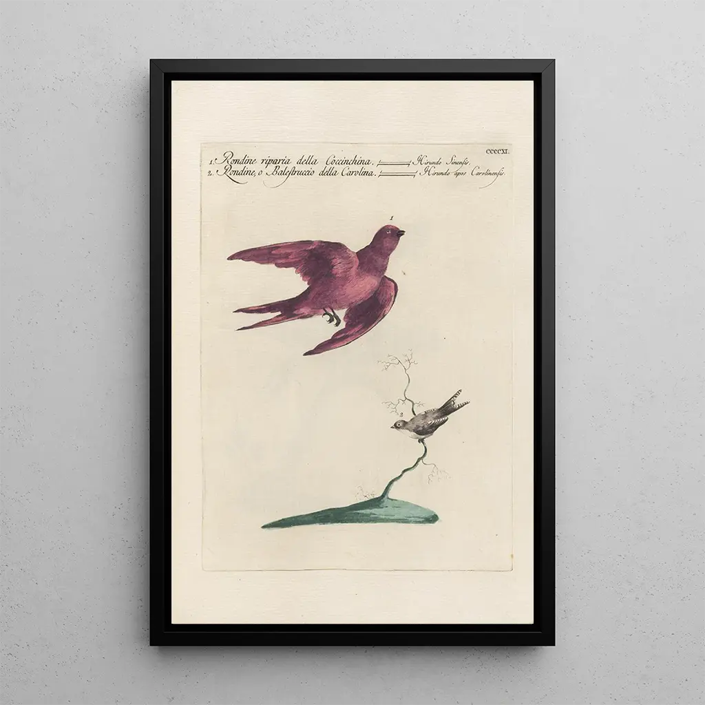 La reproduction d'Ornithologia methodice digesta Pl393 de Saverio Manetti est un véritable hommage à la diversité et à la splendeur des oiseaux. Cette œuvre captivante se distingue par ses couleurs vives et ses détails minutieux, qui plongent le spectateur dans un monde naturel fascinant. Les teintes éclatantes des plumages, associées à une composition harmonieuse, créent une atmosphère à la fois sereine et dynamique. Manetti, avec sa technique précise, parvient à capturer l'essence de chaque espèce, invitant à une contemplation prolongée de ces créatures ailées.