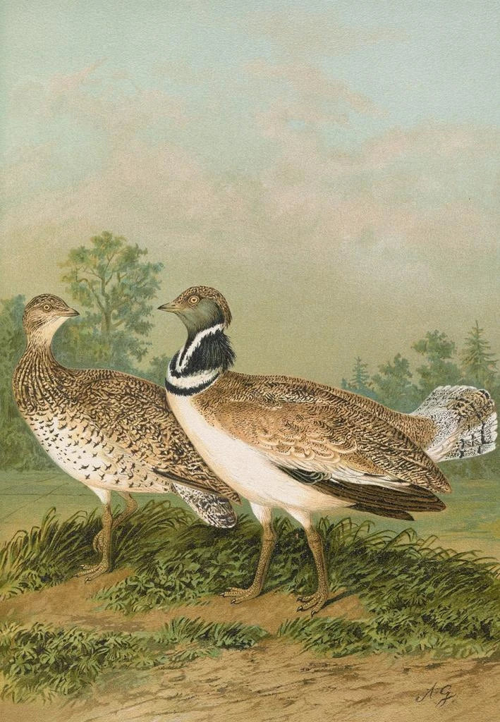 Johann Friedrich Naumann, artiste et ornithologue du XIXe siècle, a marqué son époque par ses illustrations précises et poétiques de la faune. Sa passion pour les oiseaux et son désir de les représenter fidèlement l'ont conduit à créer des œuvres qui allient science et art. "Otis tetrax" s'inscrit dans une tradition artistique qui valorise l'observation minutieuse et la représentation réaliste des espèces animales. Naumann a su capturer l'essence de ses sujets, faisant de lui un précurseur dans le domaine de l'illustration ornithologique.