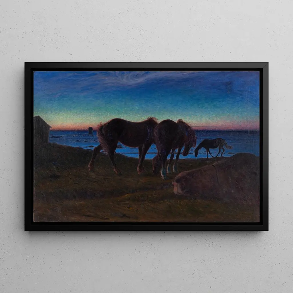 Pâturage au bord de l'eau : un tableau bucolique plein de sérénité Dans cette œuvre, Nils Kreuger capture l'essence d'un paysage paisible où la nature s'épanouit. Les couleurs douces et harmonieuses, allant des verts luxuriants aux bleus apaisants de l'eau, créent une atmosphère de tranquillité. La technique impressionniste de Kreuger se manifeste à travers des coups de pinceau fluides et délicats, donnant vie à chaque brin d'herbe et à chaque reflet sur l'eau. Ce tableau invite à une contemplation méditative, où l'on peut presque entendre le murmure de la nature environnante. Nils Kreuger : un maître du paysage scandinave Nils Kreuger, peintre suédois du début du XXe siècle, est reconnu pour sa capacité à traduire la beauté des paysages nordiques en œuvres vibrantes. Influencé par le mouvement impressionniste, il a su intégrer des éléments de lumière et de couleur qui rendent ses paysages vivants et dynamiques. Kreuger a passé une grande partie de sa carrière à explorer les paysages de la Suède, mais son travail a également été influencé par ses voyages en France. Son héritage artistique perdure, et ses œuvres continuent d'inspirer ceux qui recherchent la beauté de la nature. Une acquisition décorative aux multiples atouts La reproduction de "Pâturage au bord de l'eau" est un choix idéal pour embellir votre intérieur, que ce soit dans un salon, un bureau ou une chambre. Sa qualité d'impression garantit une fidélité remarquable aux couleurs et aux détails de l'œuvre originale, apportant une touche d'élégance et de sérénité à votre espace. Ce tableau, avec son attrait esthétique indéniable, saura séduire vos invités et créer une atmosphère apaisante, propice à la détente et à la contemplation.