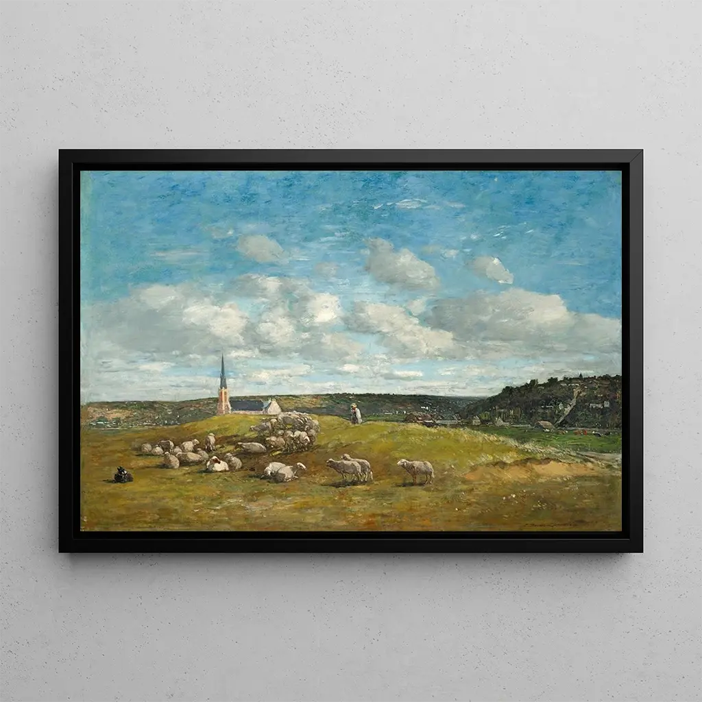 Paysage aux environs de Deauville : une évasion bucolique en plein air Le tableau "Paysage aux environs de Deauville" d'Eugène Boudin évoque une atmosphère paisible et lumineuse. Les nuances de vert et de bleu se mêlent harmonieusement, créant un paysage où la mer et le ciel se rencontrent dans une danse délicate. La technique impressionniste de Boudin, caractérisée par des coups de pinceau rapides et des touches légères, donne vie à cette scène de nature. L'œuvre invite à la contemplation, transportant le spectateur vers les rivages normands, où le vent frais et le doux bruit des vagues semblent presque palpables. Eugène Boudin : le précurseur de l'impressionnisme Eugène Boudin, né en 1824, est souvent considéré comme l'un des précurseurs de l'impressionnisme. Influencé par les paysages marins de la côte normande, il a su capturer la lumière et l'atmosphère de ses sujets avec une finesse remarquable. Sa carrière a été marquée par des rencontres avec des artistes tels que Claude Monet, qui ont contribué à façonner son style unique. Boudin a joué un rôle essentiel dans l'évolution de la peinture de plein air, ouvrant la voie à une nouvelle manière de voir et de représenter le monde naturel. Une acquisition décorative aux multiples atouts La reproduction du tableau "Paysage aux environs de Deauville" est un choix décoratif idéal pour apporter une touche de sérénité à votre intérieur. Que ce soit dans un salon, un bureau ou une chambre, cette toile évoque la beauté des paysages naturels et invite à la rêverie. Sa qualité d'impression garantit une fidélité aux couleurs et aux détails de l'œuvre originale, tout en offrant un attrait esthétique indéniable. En intégrant cette reproduction dans votre décoration, vous créez un espace chaleureux et inspirant, où chaque regard sur le tableau rappelle la magie des paysages normands.