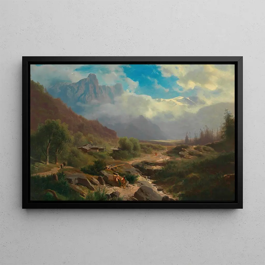Paysage de haute montagne : une évasion vers les cimes enneigées. Ce tableau captivant, "Paysage de haute montagne", nous transporte dans un monde où la majesté des sommets se mêle à la douceur des vallées. Les couleurs vives et les nuances délicates de bleu et de vert créent une atmosphère sereine, presque mystique. La technique de Leopold Heinrich Voescher, qui utilise des coups de pinceau fluides et précis, donne vie à cette scène alpine, où la lumière joue sur les flancs des montagnes. Chaque détail, des sapins aux nuages, contribue à une composition harmonieuse qui invite à la contemplation et à l'évasion. Ce paysage est une véritable ode à la nature, un appel à explorer les merveilles des hauteurs. Leopold Heinrich Voescher : un maître du paysage romantique. Artiste du XIXe siècle, Leopold Heinrich Voescher est reconnu pour ses paysages enchanteurs qui capturent l'essence de la nature. Influencé par le mouvement romantique, il s'est consacré à la représentation des paysages alpins, cherchant à exprimer les émotions suscitées par la beauté naturelle. Sa carrière, marquée par un souci du détail et une palette riche, témoigne de son engagement envers l'art paysager. Voescher a su s'imposer dans le monde de l'art grâce à sa capacité à traduire la grandeur des montagnes et la tranquillité des lacs en œuvres d'art intemporelles. Son héritage perdure, inspirant de nombreux artistes contemporains. Une acquisition décorative aux multiples atouts. La reproduction du "Paysage de haute montagne" est un choix idéal pour embellir votre intérieur, que ce soit dans un salon, un bureau ou une chambre. Sa qualité d'impression et sa fidélité à l'œuvre originale garantissent un attrait esthétique indéniable. Ce tableau, avec ses teintes apaisantes et sa composition équilibrée, apporte une touche de sérénité à n'importe quel espace. En l'accrochant sur vos murs, vous invitez non seulement la beauté de la nature chez vous, mais aussi une ambiance propice à la réflexion et à la détente. C'est une pièce décorative qui saura séduire vos invités et enrichir votre environnement.
