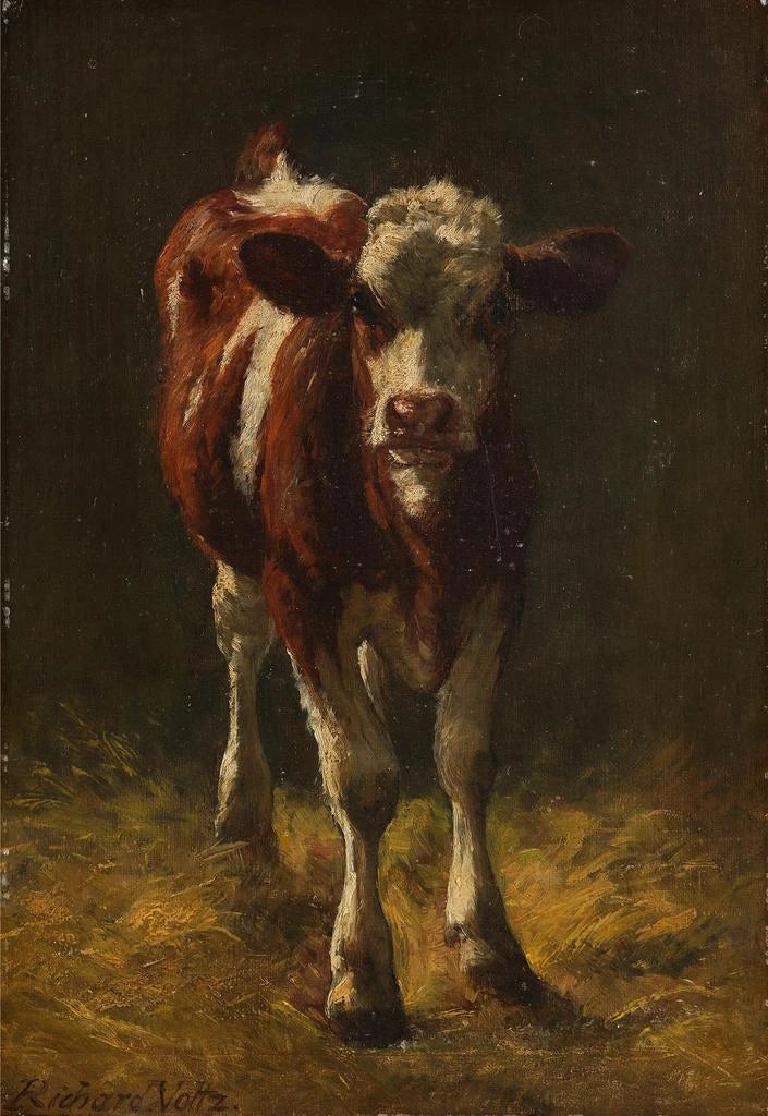 Tableau Petits agneaux dans l'étable - Richard Voltz | Reproduction