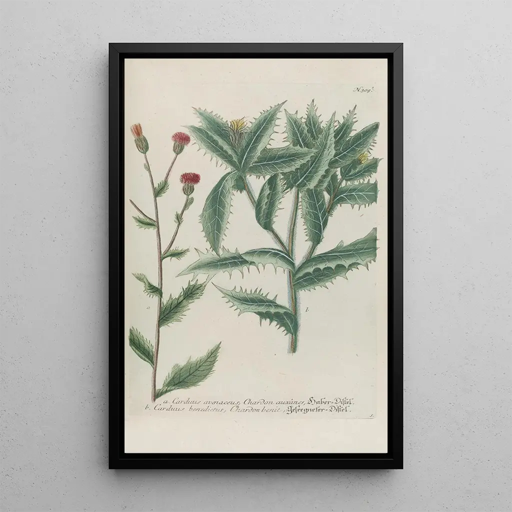 Phytanthoza iconographia Pl032 : un voyage au cœur de la flore La reproduction de Phytanthoza iconographia Pl032 nous transporte dans un univers botanique fascinant. Cette œuvre, riche en détails, met en lumière une variété de plantes exotiques, chacune dépeinte avec une précision remarquable. Les nuances délicates de vert et de violet s’entrelacent, créant une ambiance à la fois apaisante et stimulante. La technique de gravure, associée à une aquarelle subtile, confère à cette toile une atmosphère de découverte et d’émerveillement, invitant le spectateur à explorer la beauté de la nature. Johann Wilhelm Weinmann : un maître de l’illustration botanique Johann Wilhelm Weinmann, actif au XVIIIe siècle, est une figure emblématique de l’illustration botanique. Son œuvre, notamment Phytanthoza iconographia, reflète l’esprit d’une époque marquée par l’exploration et la classification des espèces végétales. Influencé par les avancées scientifiques de son temps, Weinmann a su allier art et science, produisant des illustrations qui sont à la fois esthétiques et informatives. Son héritage perdure, inspirant de nombreux artistes et botanistes à travers les siècles. Une acquisition décorative aux multiples atouts La reproduction de Phytanthoza iconographia Pl032 est une pièce décorative idéale pour embellir votre intérieur. Que ce soit dans un salon, un bureau ou une chambre, cette toile apportera une touche de fraîcheur et d’élégance. Sa qualité d’impression assure une fidélité aux couleurs et aux détails de l’œuvre originale, tout en offrant un attrait visuel indéniable. En intégrant cette reproduction dans votre décoration, vous choisissez une œuvre qui célèbre la beauté de la nature tout en ajoutant une dimension artistique à votre espace de vie.