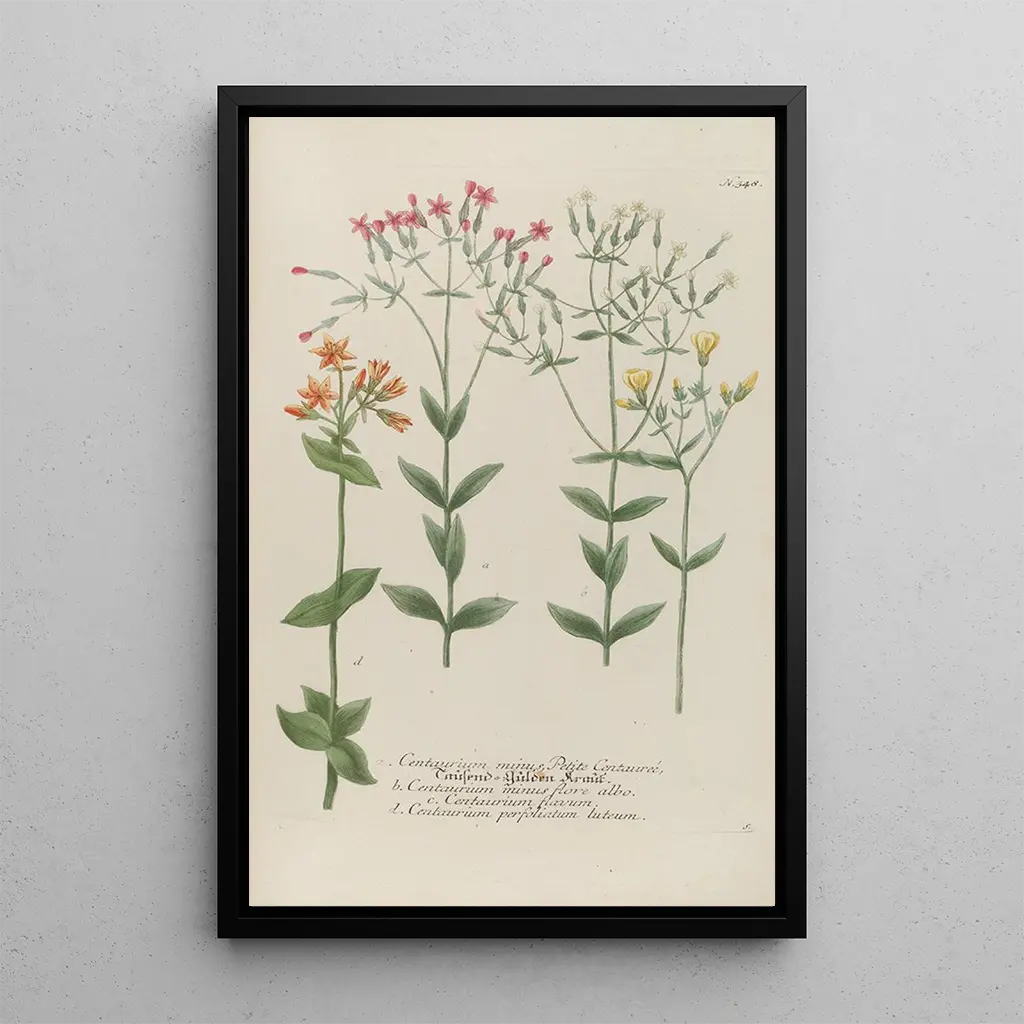 La reproduction de Phytanthoza iconographia Pl071 nous transporte dans un jardin luxuriant, où chaque plante est mise en valeur avec une précision remarquable. Les nuances délicates des fleurs, associées à des arrière-plans subtilement nuancés, créent une atmosphère apaisante et harmonieuse. La technique de gravure de Johann Wilhelm Weinmann permet de rendre les textures et les formes des végétaux avec une telle finesse qu'on pourrait presque sentir leur parfum. Ce tableau est une véritable invitation à explorer la richesse de la flore, tout en célébrant la beauté de la nature.