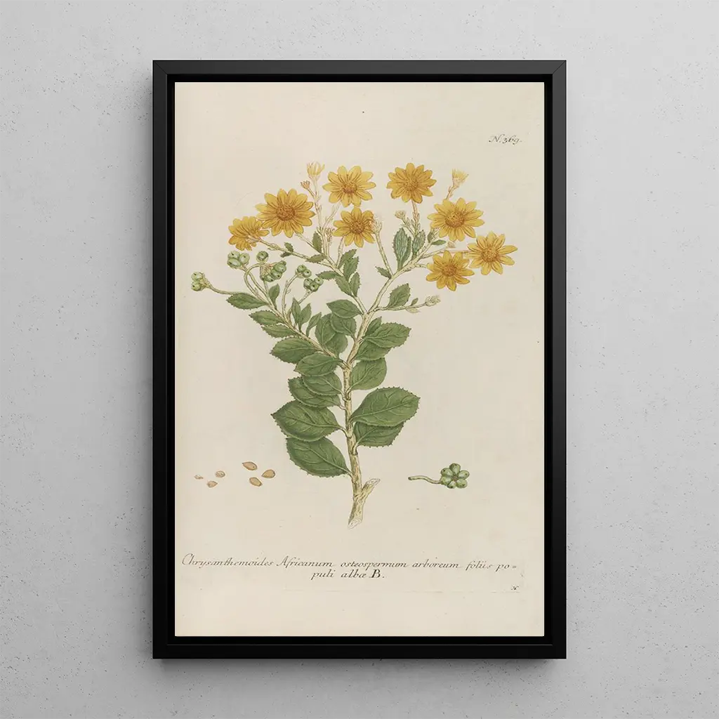 La reproduction de Phytanthoza iconographia Pl092 est une œuvre fascinante qui plonge le spectateur dans un monde de couleurs vibrantes et de détails minutieux. Chaque plante est représentée avec une précision remarquable, mettant en avant la beauté et la diversité de la flore. Les teintes éclatantes, allant des verts profonds aux jaunes lumineux, créent une atmosphère vivante et joyeuse. La technique de gravure utilisée par Johann Wilhelm Weinmann permet de capturer la délicatesse des pétales et la robustesse des tiges, offrant ainsi une véritable invitation à l'exploration botanique.