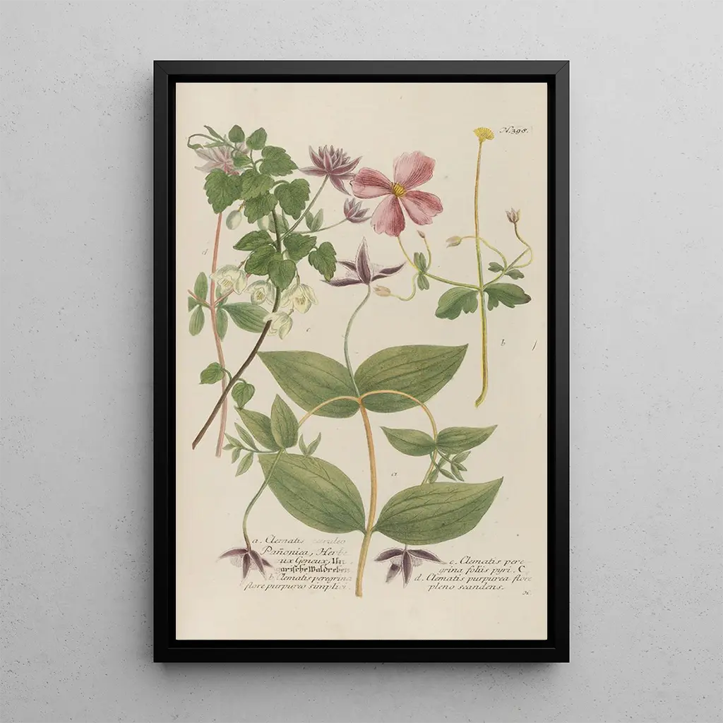 Phytanthoza iconographia Pl121 : une célébration de la nature La reproduction de Phytanthoza iconographia Pl121 s'illustre par sa richesse chromatique et sa précision botanique. Les teintes vibrantes de vert, de jaune et de rouge s'entrelacent pour donner vie à des plantes exotiques, capturant l'essence même de la flore. La technique de gravure, minutieuse et délicate, permet de rendre chaque détail avec une clarté saisissante. L'atmosphère qui émane de cette œuvre invite à une contemplation profonde, où chaque feuille et chaque pétale semblent raconter une histoire. Cette toile est une véritable ode à la beauté de la nature, un voyage visuel à travers un monde végétal fascinant. Johann Wilhelm Weinmann : un pionnier de l'illustration botanique Johann Wilhelm Weinmann, botaniste et illustrateur du XVIIIe siècle, a marqué son époque par son approche novatrice de l'illustration botanique. Actif durant une période où la science et l'art se mêlaient étroitement, il a su capturer la diversité des espèces végétales avec une précision inégalée. Ses œuvres, dont Phytanthoza iconographia, témoignent de son engagement envers la classification scientifique des plantes tout en intégrant une dimension artistique. Influencé par les découvertes botaniques de son temps, Weinmann a contribué à l'avancement des connaissances en botanique, faisant de lui une figure incontournable dans l'histoire de l'art scientifique. Une acquisition décorative aux multiples atouts La reproduction de Phytanthoza iconographia Pl121 constitue un choix décoratif idéal pour divers espaces, qu'il s'agisse d'un salon, d'un bureau ou d'une chambre. Sa qualité d'impression et sa fidélité aux détails originaux en font une pièce d'art captivante qui attire le regard et suscite l'admiration. En intégrant cette toile dans votre décoration intérieure, vous apportez une touche de nature et d'élégance à votre environnement. Son attrait esthétique, allié à son histoire riche, en fait un élément décoratif qui ne manquera pas d'enrichir votre espace de vie et d'inspirer ceux qui le contemplent.