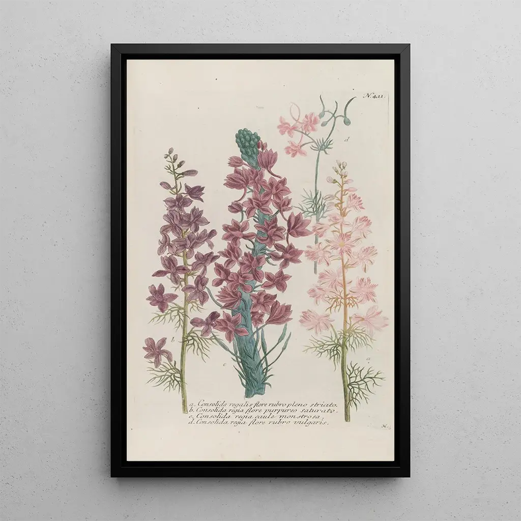 La reproduction de Phytanthoza iconographia Pl134, œuvre de Johann Wilhelm Weinmann, nous plonge dans un univers botanique fascinant. Les couleurs vives et les détails minutieux des plantes illustrées évoquent une nature luxuriante et foisonnante. La technique de gravure utilisée par Weinmann permet de capturer la délicatesse des formes et la richesse des textures, créant ainsi une atmosphère à la fois scientifique et poétique. Chaque élément de la composition semble raconter une histoire, invitant le spectateur à explorer les merveilles du monde végétal.