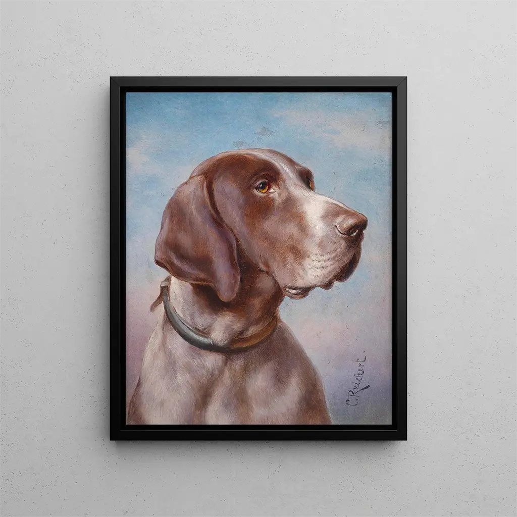 Reproduction Portrait de chien - Carl Reichert – Introduction captivante Dans le monde fascinant de l'art, certaines œuvres parviennent à capturer l'essence d'un sujet d'une manière si poignante qu'elles transcendent le simple visuel pour devenir des témoignages de l'émotion et de l'esprit. Le "Portrait de chien" de Carl Reichert est l'une de ces créations. Ce tableau, qui illustre avec une précision délicate la beauté d'un chien, évoque non seulement l'affection que l'on peut porter à ces animaux, mais aussi un regard introspectif sur la relation entre l'homme et son fidèle compagnon. La représentation d'un animal de compagnie, souvent considéré comme un membre de la famille, est ici sublimée par le talent de Reichert, offrant au spectateur une invitation à explorer la profondeur des liens qui nous unissent à nos amis à quatre pattes. Style et singularité de l’œuvre Le style de Carl Reichert s'inscrit dans le courant du réalisme, où la minutie du détail et la finesse des traits sont mises en avant. Dans le "Portrait de chien", chaque poil est rendu avec une telle précision qu'on pourrait presque ressentir la texture de la fourrure sous nos doigts. La lumière joue un rôle crucial dans cette œuvre, accentuant les ombres et les reflets, ce qui donne vie à l'animal. L'expression du chien, à la fois douce et attentive, semble capturer un moment de réflexion, comme s'il était conscient de son propre regard posé sur le monde. Ce portrait ne se contente pas de représenter un animal ; il raconte une histoire, celle d'une complicité silencieuse entre l'homme et son compagnon, une thématique universelle qui résonne à travers les âges. L’artiste et son influence Carl Reichert, peintre autrichien du XIXe siècle, est souvent reconnu pour ses talents exceptionnels dans la représentation des animaux. Son œuvre s'inscrit dans une tradition artistique qui valorise la nature et les créatures qui l'habitent. Influencé par les grands maîtres de son temps, Reichert a su développer un style qui lui est propre, mêlant réalisme et une touche d'idéalisation. Ses tableaux ne se limitent pas à une simple représentation ; ils sont le reflet d'une sensibilité artistique qui cherche à établir un dialogue entre l'art et la nature. En mettant en lumière les animaux, Reichert nous invite à réfléchir sur notre place dans le monde naturel et sur les liens qui