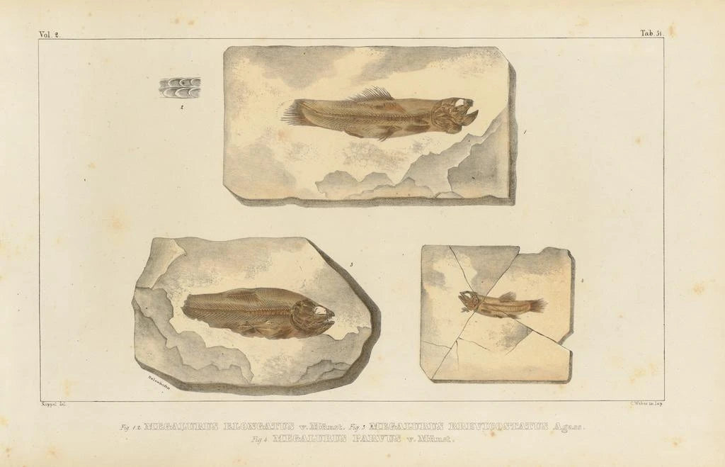 Louis Agassiz, naturaliste et géologue suisse du XIXe siècle, est reconnu pour ses contributions majeures à la biologie et à la paléontologie. Son approche novatrice et ses recherches approfondies sur les fossiles ont révolutionné notre compréhension de l'évolution des espèces. Agassiz a également joué un rôle clé dans l'établissement de la science moderne, en intégrant l'observation artistique à la recherche scientifique. Son travail a eu un impact durable sur les sciences naturelles, et ses illustrations, comme celles de "Recherches sur les Poissons Fossiles", témoignent de son engagement à rendre la science accessible et visuellement captivante.