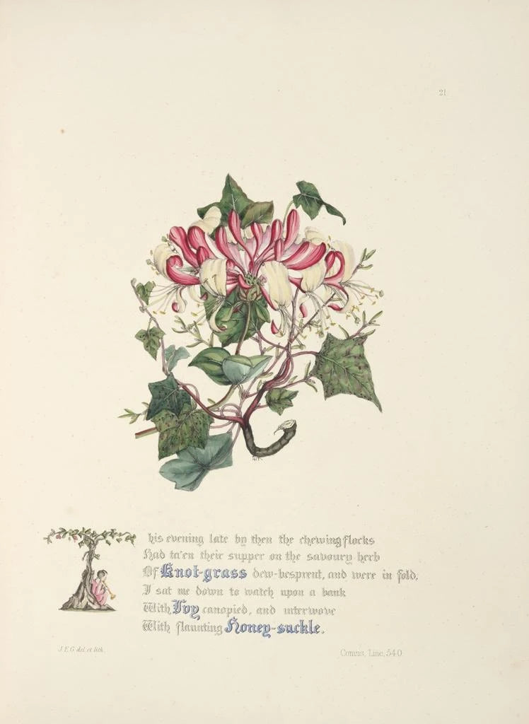 Tableau Renouée lierre et chèvrefeuille - Jane Elizabeth Giraud | Reproduction