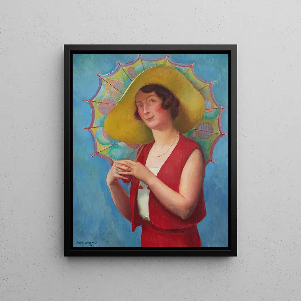 La palette de Zárraga, dominée par des tons chauds et mats, confère à la toile une atmosphère à la fois intime et raffinée. L’ombrelle, motif récurrent de la peinture moderne, devient ici symbole de pudeur et de mystère, renforçant la profondeur émotionnelle du portrait.
