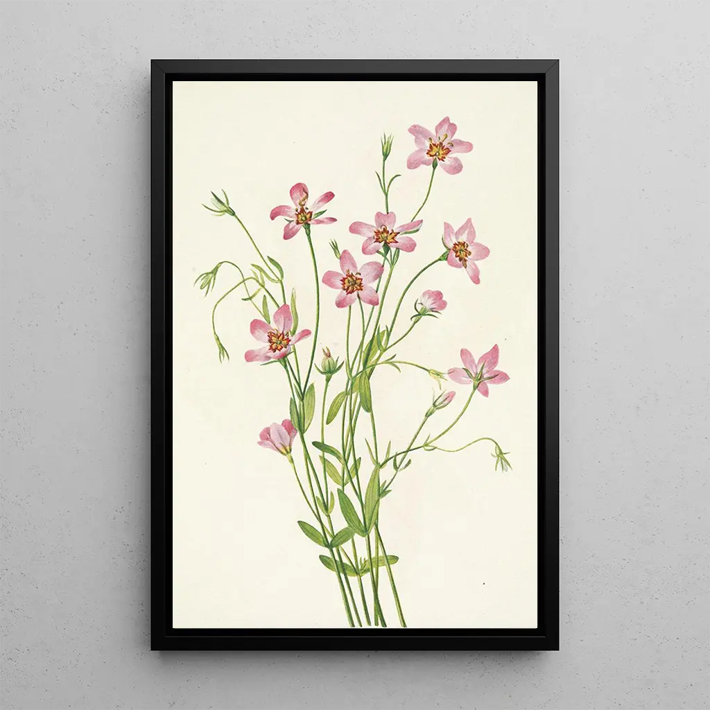 La reproduction de la Rosegentiane des marais salants, ou Sabbatia stellaris, nous plonge dans un univers floral où la délicatesse des pétales se mêle à la robustesse des marais. Les teintes pastel, allant du rose tendre au blanc éclatant, évoquent une douceur printanière, tandis que les détails minutieux de chaque fleur capturent la lumière d'une manière presque magique. Mary Vaux Walcott, avec sa technique aquarelliste, parvient à insuffler une vie vibrante à cette plante, rendant hommage à la beauté éphémère de la nature. L'atmosphère qui se dégage de cette œuvre invite à la contemplation et à l'émerveillement devant la richesse de la biodiversité.