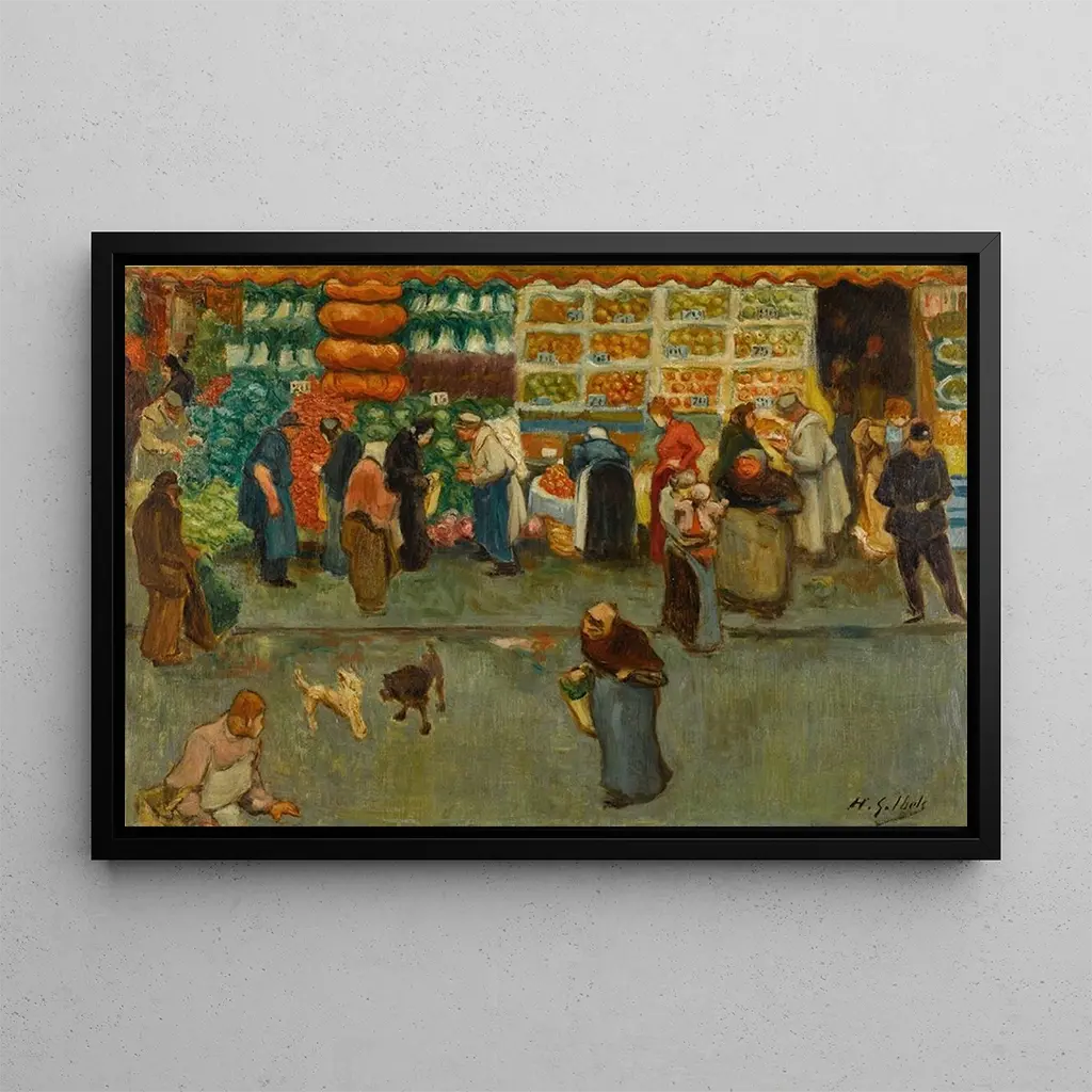 Henri-Gabriel Ibels, artiste français né en 1867, est un représentant emblématique de la Belle Époque. Influencé par le mouvement impressionniste, il se distingue par sa capacité à capturer des scènes de la vie quotidienne avec une sensibilité unique. Sa carrière s'étend sur plusieurs décennies, durant lesquelles il a su évoluer tout en restant fidèle à son style. Ibels a également collaboré avec des revues illustrées, ce qui lui a permis de diffuser son art à un large public. Sa représentation de la vie parisienne, à travers des scènes de marché et de loisirs, témoigne d'une époque où la modernité et la tradition coexistaient harmonieusement.