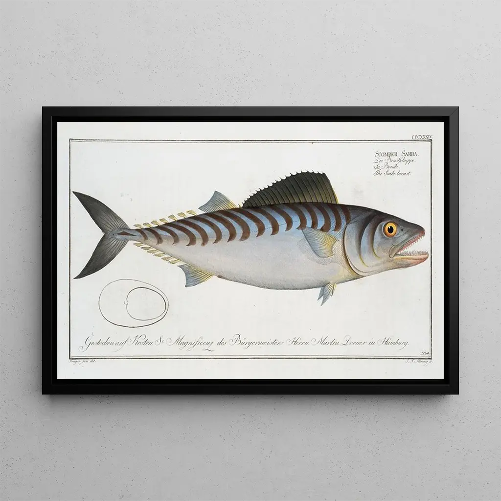 Cette reproduction du Scomber sarda, le maquereau, est une pièce décorative idéale pour apporter une touche marine à votre intérieur. Que ce soit dans un salon, un bureau ou une chambre, ce tableau attire le regard et suscite la curiosité. Sa qualité d'impression garantit une fidélité exceptionnelle aux détails de l'œuvre originale, tout en offrant un attrait esthétique indéniable. En choisissant cette toile, vous optez pour une décoration qui évoque la beauté de la mer et enrichit votre espace de vie d'une note artistique et naturelle.