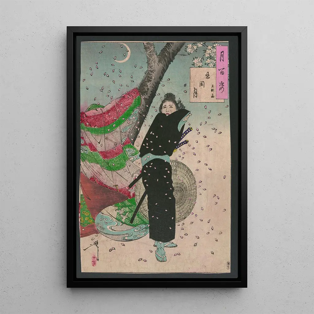 Shinobugaoka no tsuki, œuvre emblématique de Tsukioka Yoshitoshi, évoque la magie de la nuit japonaise. La composition délicate et les teintes douces de l'estampe créent une ambiance paisible, presque mystique. Les nuances de bleu et d'argent illuminent le paysage, tandis que la lune, majestueuse, semble veiller sur la scène. La technique raffinée de l'ukiyo-e permet de rendre hommage à la beauté éphémère de la nature, invitant le spectateur à s'immerger dans cette atmosphère contemplative. Cette reproduction du tableau Shinobugaoka no tsuki est une véritable invitation à la rêverie.