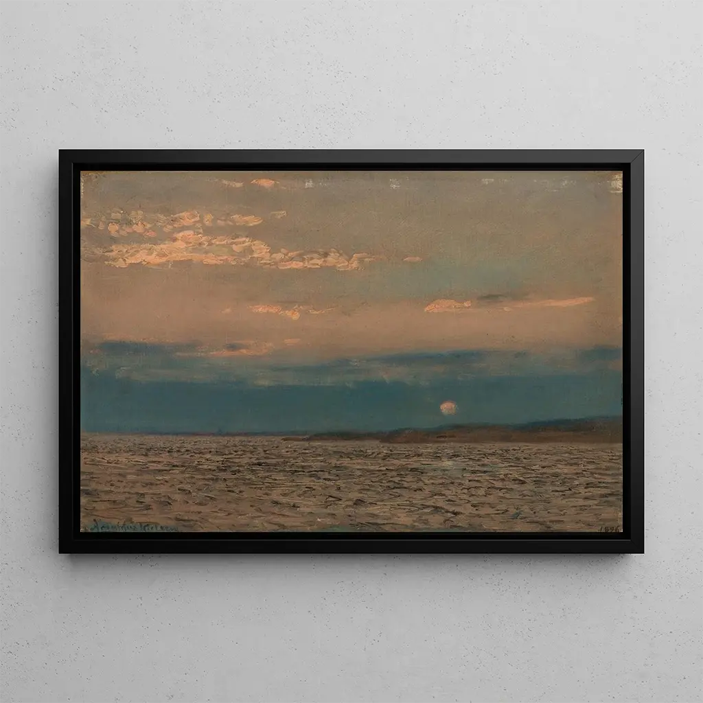 Soir Hvaler : une sérénade visuelle au crépuscule. Dans cette œuvre d'Amaldus Nielsen, le spectateur est transporté au bord de l'eau, où la lumière du crépuscule danse sur les vagues calmes de Hvaler. Les nuances de bleu et d'orange se mêlent harmonieusement, créant une atmosphère paisible et contemplative. Nielsen, avec sa technique impressionniste, capture la beauté fugace du moment, invitant à la rêverie. Les silhouettes des bateaux se dessinent doucement contre l'horizon, tandis que les reflets scintillants ajoutent une dimension poétique à la scène. Ce tableau est une véritable ode à la nature et à la tranquillité des soirées d'été. Amaldus Nielsen : un maître du paysage scandinave. Né en 1850, Amaldus Nielsen est un peintre norvégien qui a su capturer la beauté des paysages scandinaves avec une sensibilité unique. Actif à la fin du XIXe siècle, il est souvent associé au mouvement impressionniste, cherchant à représenter la lumière et l'atmosphère de ses sujets. Ses œuvres, influencées par la nature environnante, témoignent de son amour pour la mer et les paysages norvégiens. Nielsen a joué un rôle essentiel dans l'évolution de l'art scandinave, et ses tableaux continuent d'inspirer par leur capacité à évoquer des émotions profondes et à célébrer la beauté naturelle. Une acquisition décorative aux multiples atouts. La reproduction de "Soir Hvaler" est un choix idéal pour enrichir votre décoration intérieure, qu'il s'agisse d'un salon, d'un bureau ou d'une chambre. Sa qualité d'impression garantit une fidélité remarquable aux couleurs et aux détails de l'œuvre originale. Ce tableau apporte une touche de sérénité et d'élégance à tout espace, tout en évoquant la beauté intemporelle des paysages scandinaves. En intégrant cette reproduction dans votre intérieur, vous créez un environnement apaisant et inspirant, parfait pour se ressourcer après une longue journée.