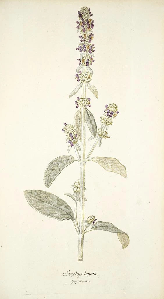 Nikolaus Joseph Freiherr von Jacquin, botaniste et artiste du XVIIIe siècle, a marqué son époque par ses contributions à la science et à l'art. Ses voyages à travers l'Europe et les colonies ont enrichi ses connaissances et son œuvre, lui permettant de documenter des espèces végétales rares et exotiques. Stachys lanata est un exemple parfait de son approche méticuleuse et de son désir de partager la beauté de la nature avec un large public. En tant que membre influent de la communauté scientifique, Jacquin a ouvert la voie à de futures générations d'artistes et de botanistes.