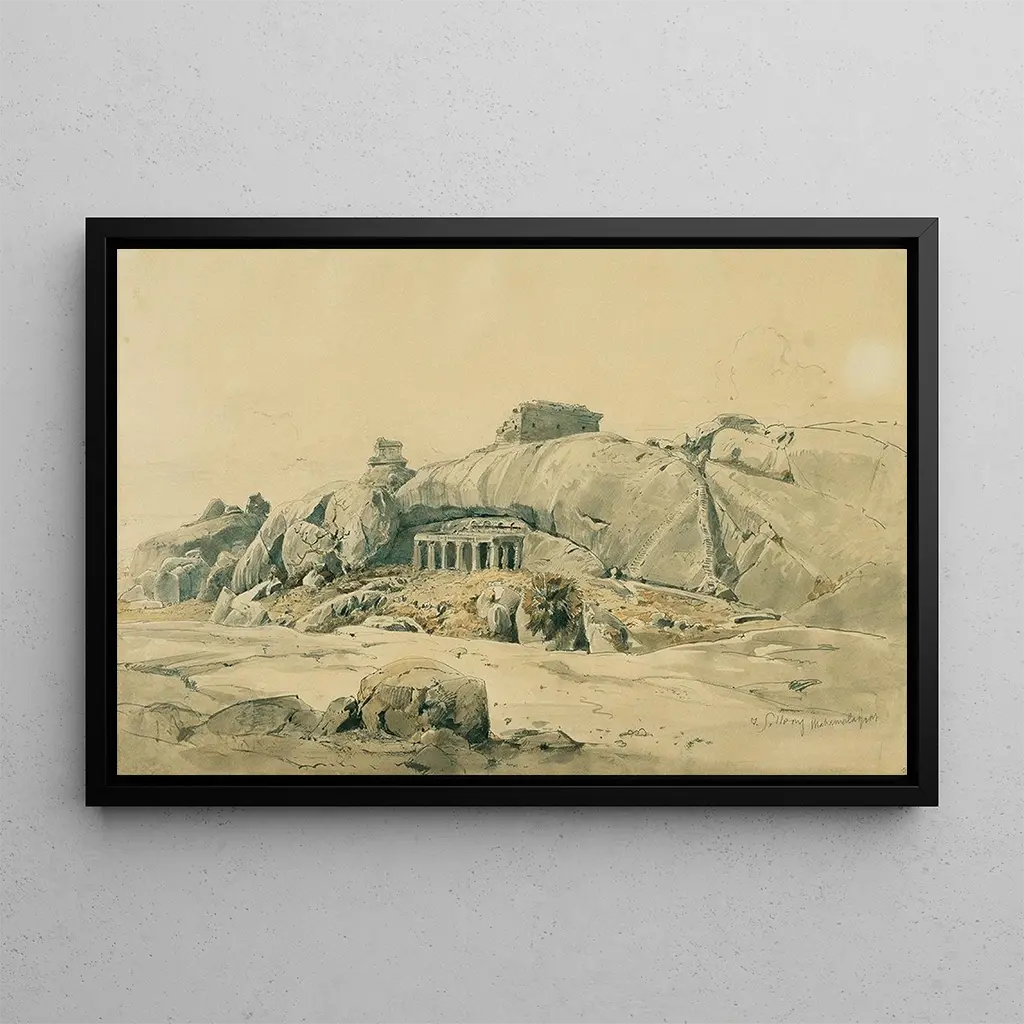 Temple rocheux de Mamallapuram Mahamaleipur Inde : un monument de la spiritualité La reproduction du "Temple rocheux de Mamallapuram Mahamaleipur" évoque la majesté et la spiritualité d'un site emblématique de l'Inde. Sculpté dans la roche, ce temple témoigne d'une architecture raffinée et d'un savoir-faire exceptionnel. Les détails minutieux des sculptures, représentant des divinités et des scènes mythologiques, plongent le spectateur dans un univers sacré. La lumière naturelle qui caresse les pierres renforce la beauté de cette œuvre, créant une atmosphère mystique et intemporelle, propice à la méditation et à la réflexion. Joseph Selleny : un explorateur des merveilles architecturales Joseph Selleny, un artiste du XIXe siècle, a su capturer l'essence des monuments historiques à travers ses œuvres. Son intérêt pour l'architecture et les paysages exotiques l'a conduit à réaliser des reproductions de sites célèbres, dont le temple de Mamallapuram. Selleny, influencé par le mouvement romantique, cherchait à exprimer la grandeur et la beauté des cultures anciennes. Son travail est un témoignage précieux de l'architecture indienne, permettant aux générations futures d'apprécier ces trésors du patrimoine mondial. Une acquisition décorative aux multiples atouts La reproduction du "Temple rocheux de Mamallapuram Mahamaleipur" est une pièce décorative qui apportera une touche d'exotisme et de spiritualité à votre intérieur. Que ce soit dans un salon, un bureau ou une chambre, cette toile attire l'œil et suscite l'émerveillement. Sa qualité de reproduction assure une fidélité aux détails architecturaux et aux textures, tout en ajoutant une dimension artistique à votre décoration. En intégrant cette œuvre dans votre espace, vous créez une ambiance inspirante et apaisante, idéale pour la contemplation et la sérénité.
