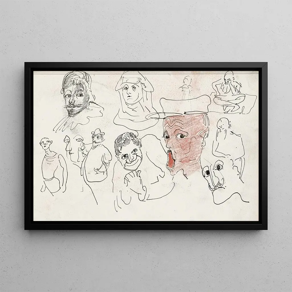 Têtes caricaturales : un jeu de visages expressifs et colorés Les Têtes caricaturales de Carel Adolph Lion Cachet sont une célébration de l'expression humaine à travers des formes exagérées et des couleurs vives. Chaque visage, avec ses traits accentués, évoque une personnalité unique, presque vivante. La technique de l'artiste, qui mêle aquarelle et encre, crée une atmosphère ludique et dynamique, invitant le spectateur à explorer les émotions et les histoires derrière chaque caricature. La composition, souvent asymétrique, renforce l'idée de mouvement et de vivacité, transformant chaque tableau en une scène vibrante de vie. Carel Adolph Lion Cachet : un pionnier du design et de l'illustration Carel Adolph Lion Cachet, né en 1864 aux Pays-Bas, est reconnu pour son rôle dans le développement de l'art graphique au début du XXe siècle. Influencé par le mouvement Art nouveau, il a su allier esthétique et fonctionnalité dans ses œuvres. Son travail, bien que moins connu que celui de ses contemporains, a marqué son époque par sa capacité à capturer l'esprit de la société à travers des illustrations pleines de caractère. Cachet a également contribué à l'illustration de livres et à la création de décors, faisant de lui une figure importante dans le monde de l'art appliqué. Une acquisition décorative aux multiples atouts La reproduction des Têtes caricaturales est un choix idéal pour ceux qui souhaitent ajouter une touche d'originalité à leur intérieur. Que ce soit dans un salon, un bureau ou une chambre, ce tableau attire l'œil et suscite des conversations. Sa qualité de reproduction garantit une fidélité aux couleurs et aux détails de l'œuvre originale, tout en offrant un attrait esthétique indéniable. En intégrant cette toile dans votre décoration, vous apportez une note de créativité et de joie, transformant votre espace en un lieu d'inspiration et de plaisir visuel.