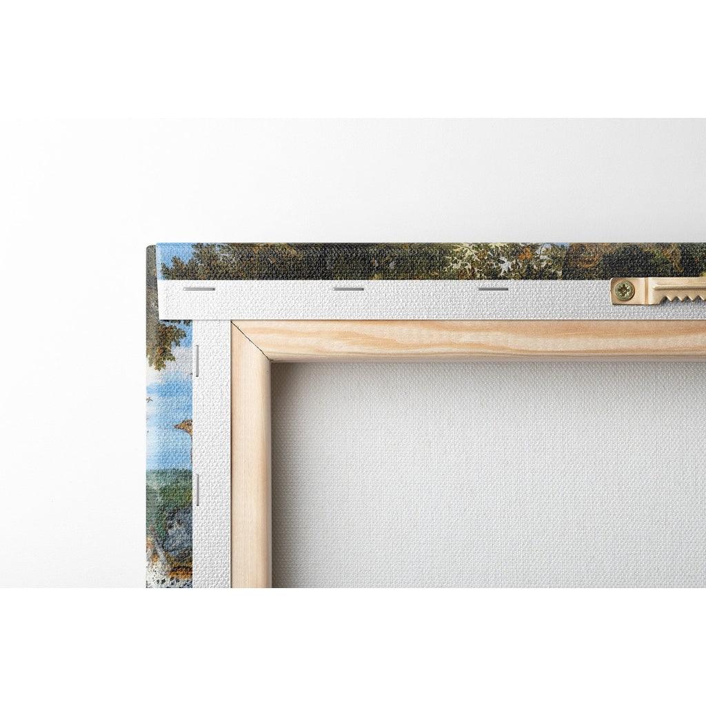 Toile, impression rendu mat, montée sur une structure en bois, prête à suspendre. Options d'encadrement disponibles sur certains formats.