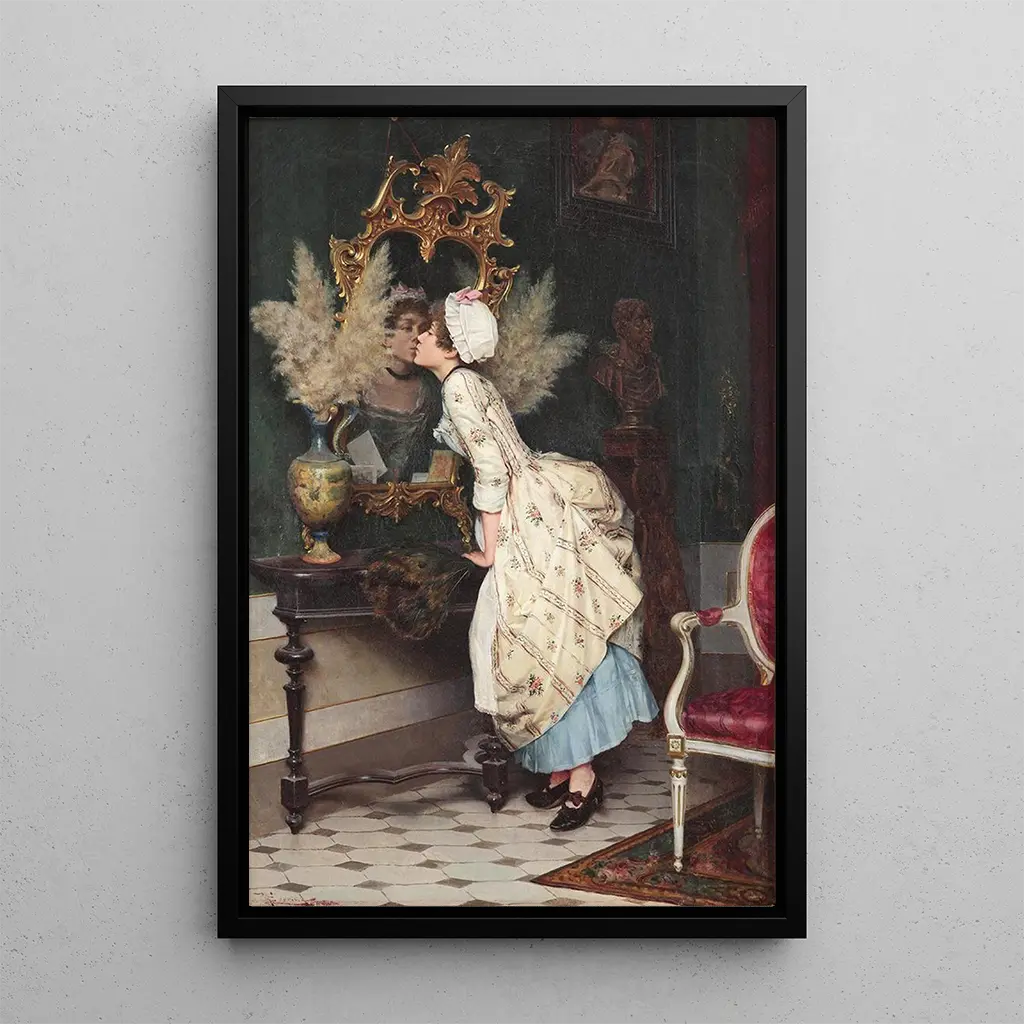 La reproduction de "Un baiser au reflet" est une pièce décorative qui saura enrichir votre intérieur, que ce soit dans un salon, un bureau ou une chambre. Sa qualité d'impression et la fidélité des couleurs rendent hommage à l'œuvre originale, tout en apportant une touche d'élégance et de romantisme à votre décoration. Ce tableau, avec son attrait esthétique indéniable, devient un véritable point focal, suscitant l'admiration et la contemplation de vos invités. Offrez-vous cette toile pour transformer votre espace en un lieu d'émotions et de beauté intemporelle.