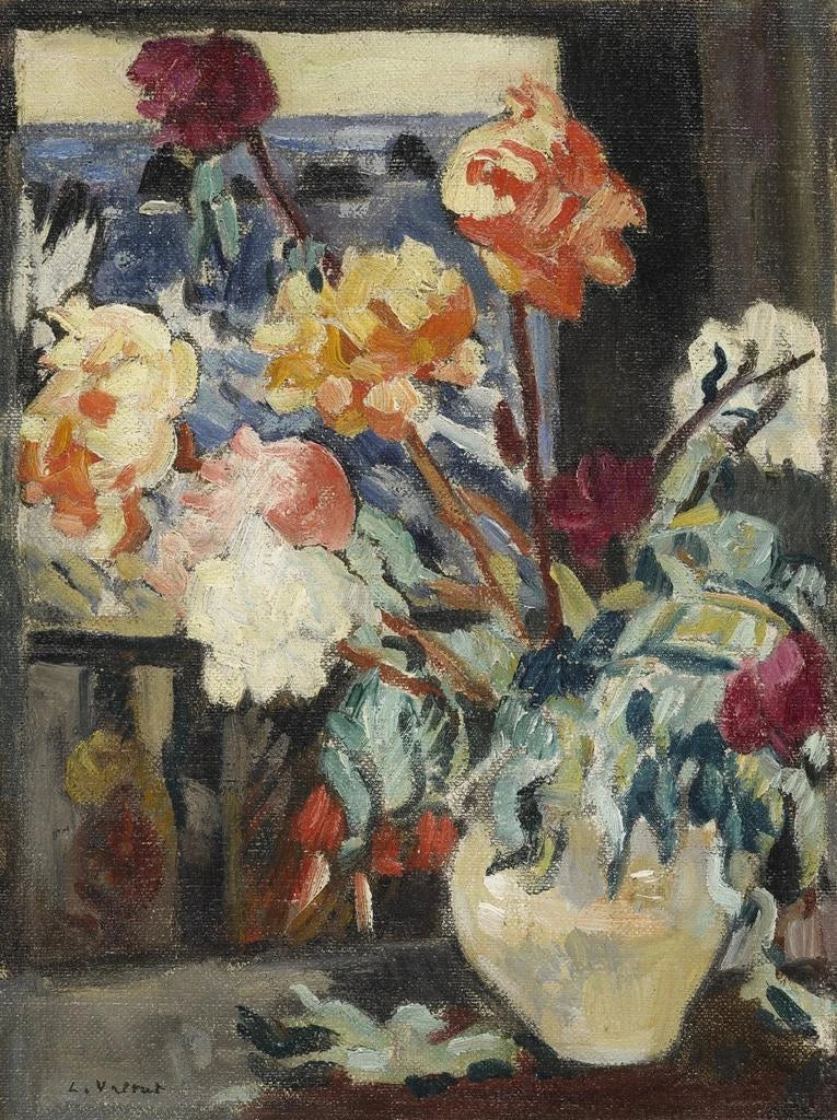 Vase de pivoines devant une fenêtre - Louis Valtat