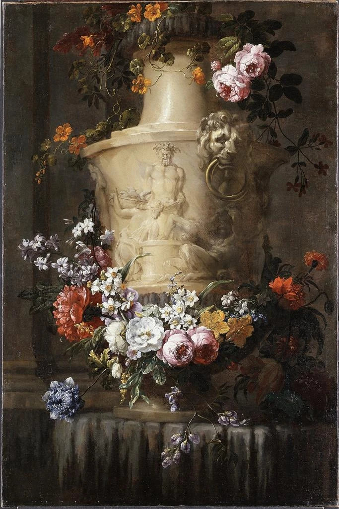 Tableau Vase en marbre avec guirlande de fleurs - Jean-Baptiste Monnoyer | Reproduction