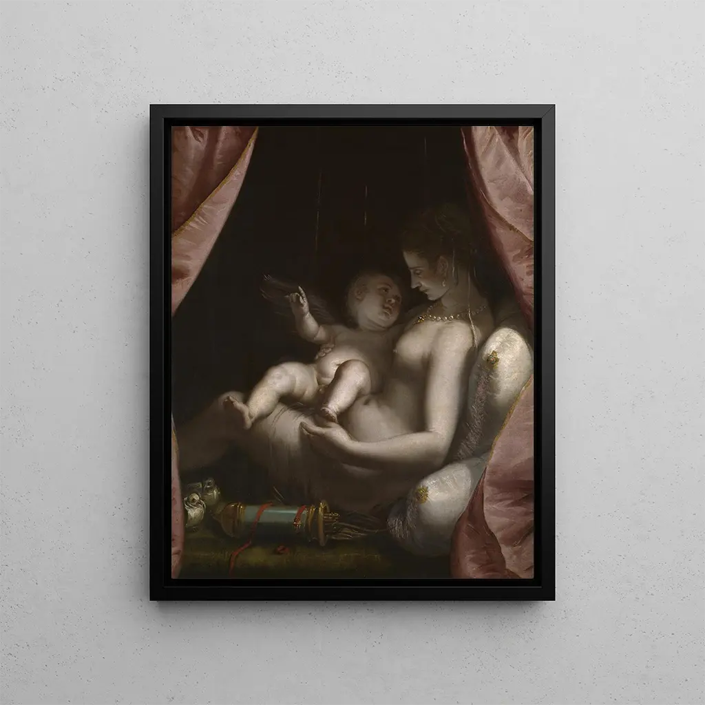 Reproduction Vénus et Cupidon - Luca Cambiaso – Introduction captivante L'œuvre "Vénus et Cupidon" de Luca Cambiaso est une véritable ode à l'amour et à la beauté, incarnant l'essence même de la mythologie classique à travers le prisme de la Renaissance italienne. Ce tableau, riche en couleurs et en émotions, transporte le spectateur dans un univers où la sensualité et la tendresse se mêlent harmonieusement. En contemplant cette scène, on peut presque entendre le doux murmure des histoires d'amour anciennes, celles qui transcendent le temps et touchent l'âme. Cambiaso, en maître de la lumière et de l'ombre, réussit à capturer non seulement les traits délicats de ses personnages, mais aussi l'atmosphère d'un moment suspendu, invitant chacun à s'immerger dans une réalité empreinte de poésie. Style et singularité de l’œuvre Le style de Luca Cambiaso se distingue par sa capacité à fusionner les influences de l'école génoise avec les innovations de la Renaissance. Dans "Vénus et Cupidon", les figures sont rendues avec une précision anatomique qui témoigne d'une maîtrise technique exceptionnelle. L'artiste utilise une palette de couleurs vibrantes, où les tons chauds s'entrelacent pour créer une ambiance à la fois intime et séduisante. Les drapés des vêtements, délicatement modelés, ajoutent une dimension de mouvement à la composition, renforçant l'idée que ces divinités ne sont pas de simples représentations, mais des êtres vivants, presque palpables. La manière dont Cambiaso joue avec la lumière accentue les volumes et les textures, faisant de chaque détail un élément essentiel de l'ensemble. Cette œuvre est donc non seulement une représentation mythologique, mais aussi une exploration de la beauté sous toutes ses formes. L’artiste et son influence Luca Cambiaso, né à Gênes au XVIe siècle, est l'un des artistes les plus emblématiques de son époque. Son œuvre est marquée par une profonde compréhension des formes et des volumes, influencée par les maîtres de la Renaissance tels que Michel-Ange et Raphaël. Cambiaso a su s'approprier ces influences pour développer un style unique, alliant dynamisme et harmonie. Il a également joué un rôle clé dans l'évolution de l'art à Gênes, contribuant à la renommée de cette ville comme un centre artistique majeur. Son impact s'ét